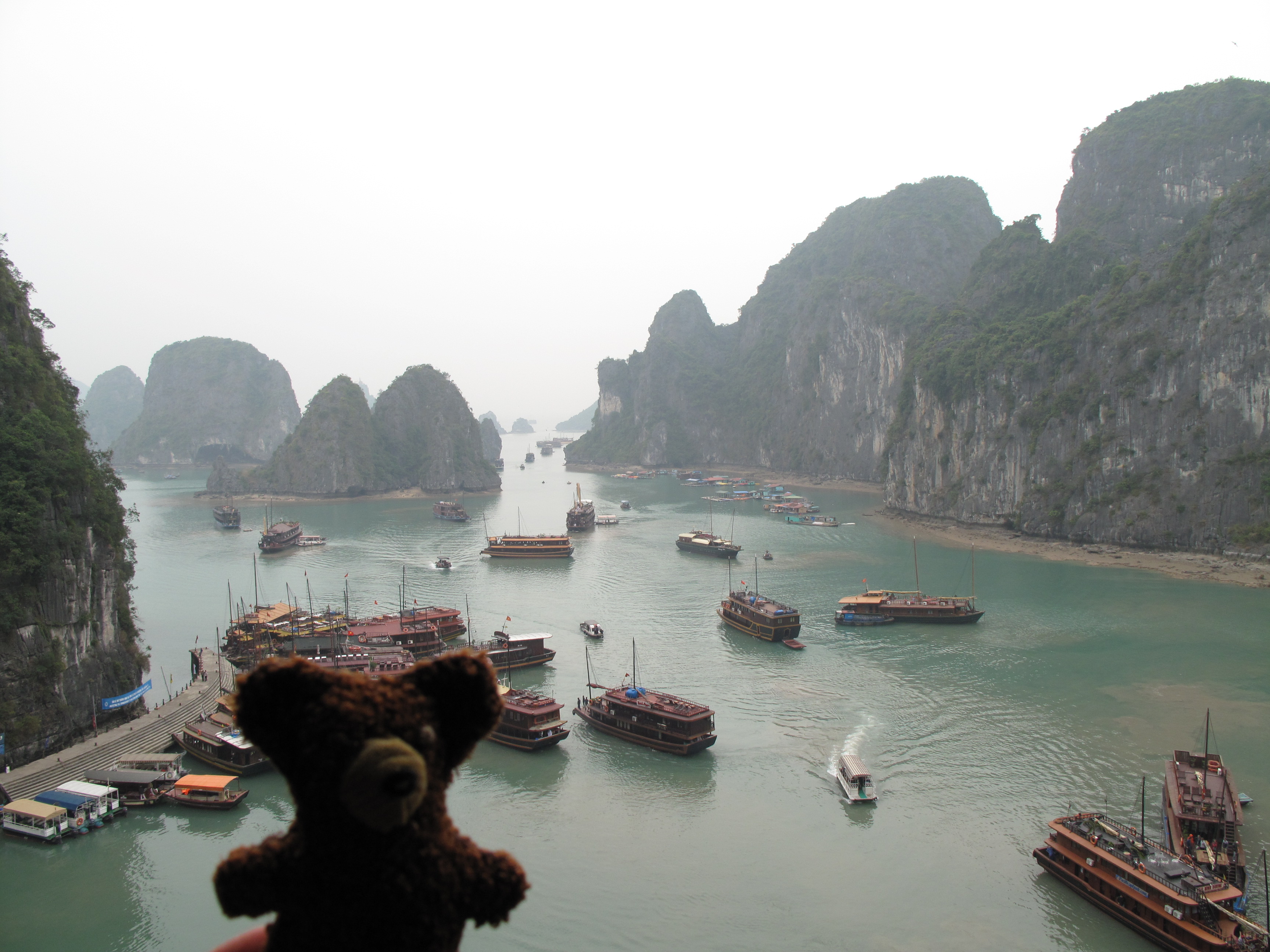 Am frühen Morgen machte ich mich auf zur Halong Bucht. Obwohl es noch nicht einmal 200km sind, dauerte die Fahrt eine ganze Weile. Die Max-Geschwindigkeit für Autos liegt bei 80 km/h. Schön wenn man überhaupt mal so schnell voran kommt :-).