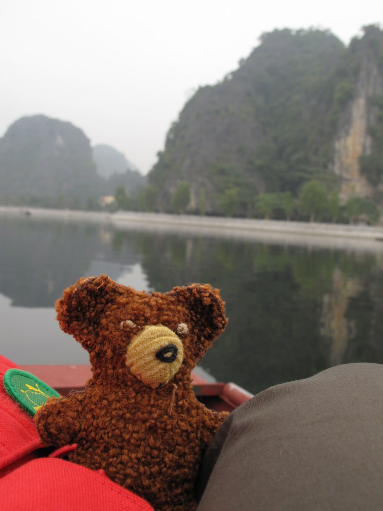 Heute mache ich einen Bootsausflug durch die trockene Halong Bucht. Trockene Halong Bucht deshalb, weil es ähnlich der „richtigen“ Halong Bucht ist, aber in einem Flusstal liegt und viel weniger Wasser hat.