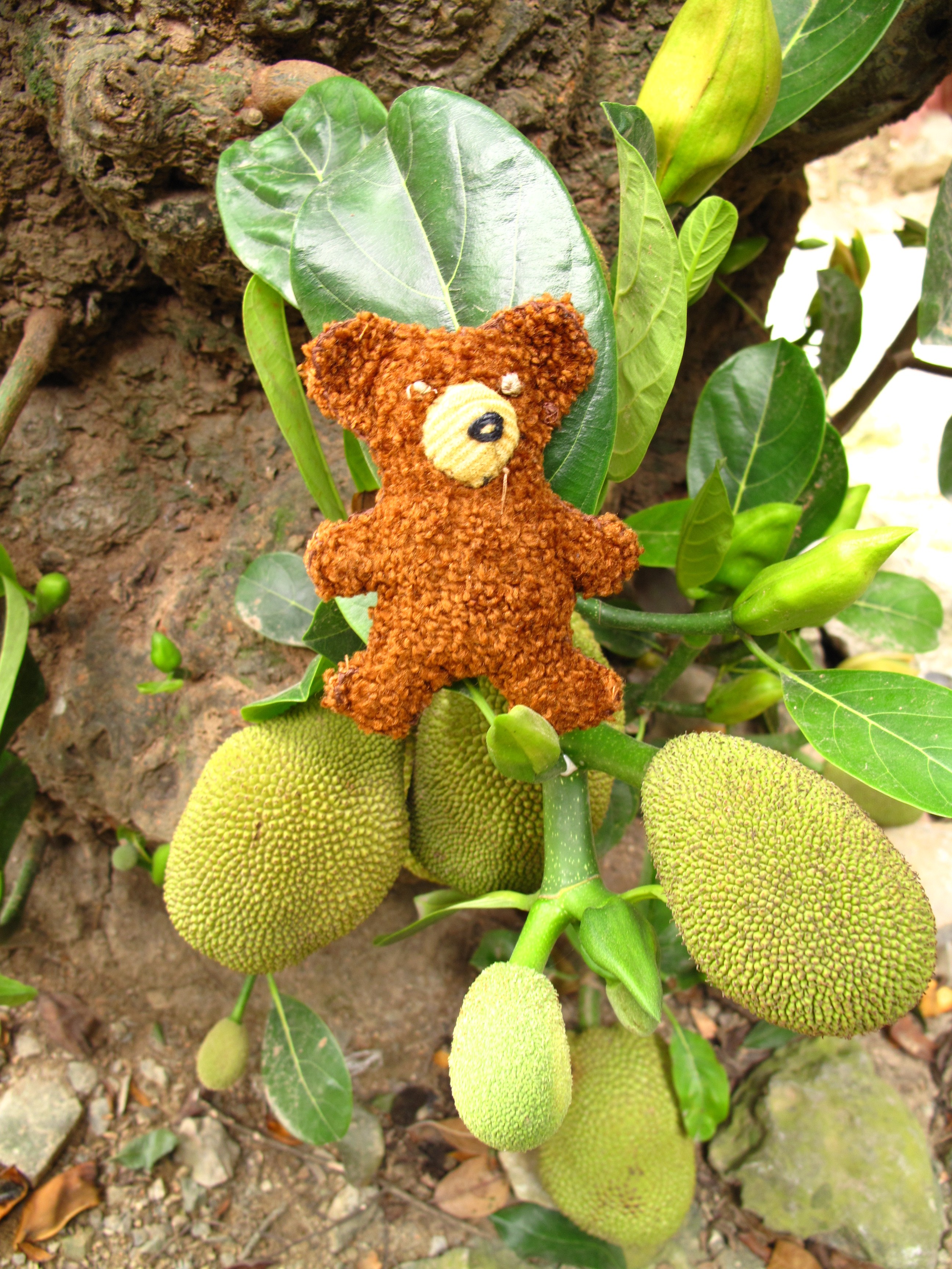 Hier hab ich auch meinen ersten Jack Fruit-Baum gesehen. Die Frucht gibt es auch getrocknet als Chips: Sehr lecker :-). Die Bäume wachsen hier überall und die Früchte werden größer als Wassermelonen.