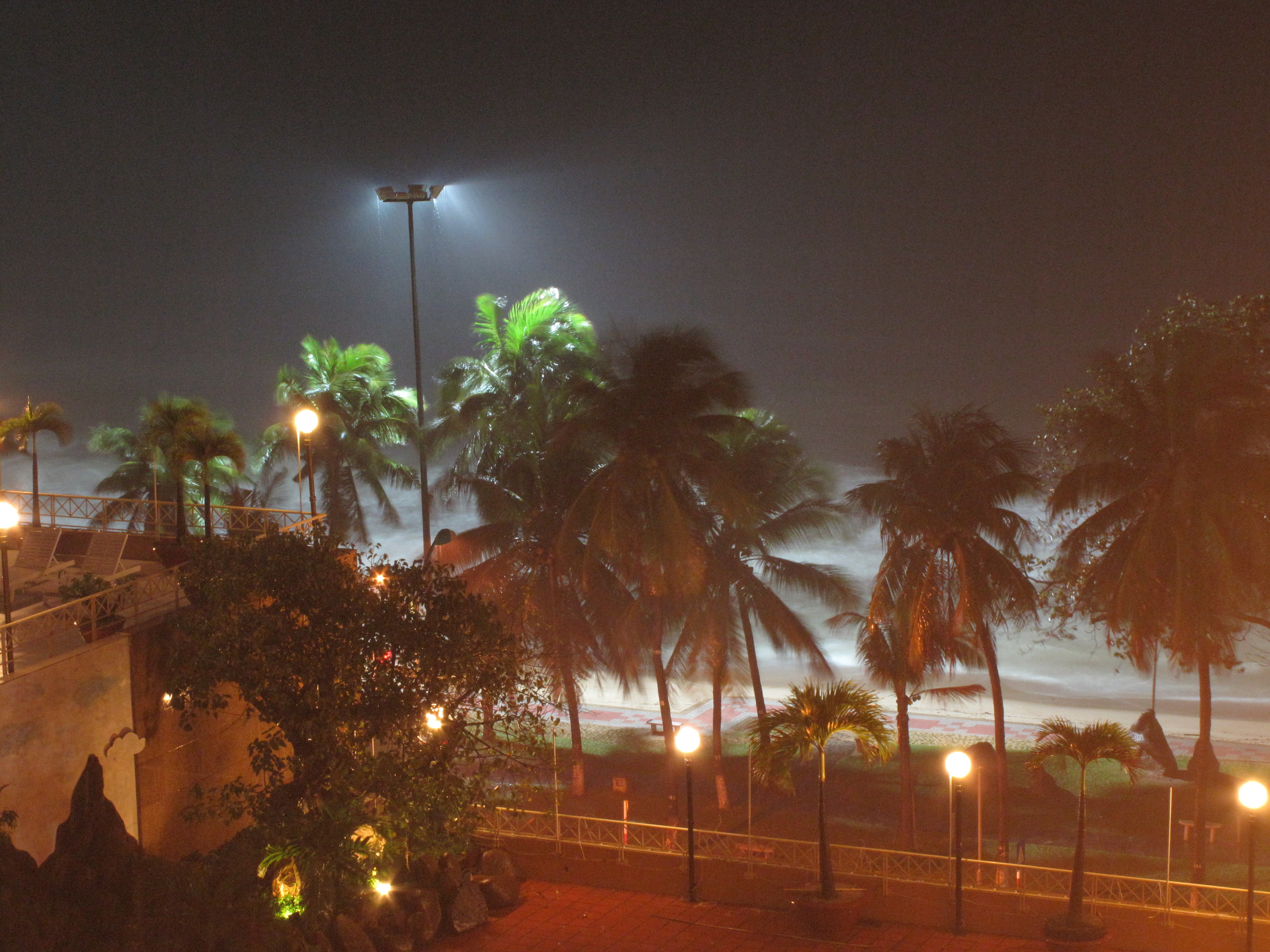 Da jetzt langsam auch schon die Dunkelheit einsetzte und um mich vor dem bösen Tropensturm in Sicherheit zu bringen, checkte ich im Hotel ein (Yasaka Hotel). Der Regen und der Wind peitschten gegen die Hotelfenster und die Palmen wurden ganz schön durchgeschüttelt.
