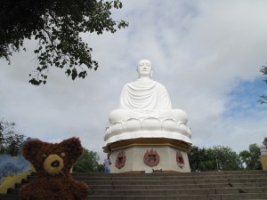 Der Morgenhimmel stimmte mich optimistisch, da die Sonne schien und es angenehm warm war. Vor der Fahrt nach Da Lat besuchten wir noch die große, sitzende Buddha-Statue (15m; errichtet 1963) auf dem Trai-Thuy-Hügel.