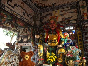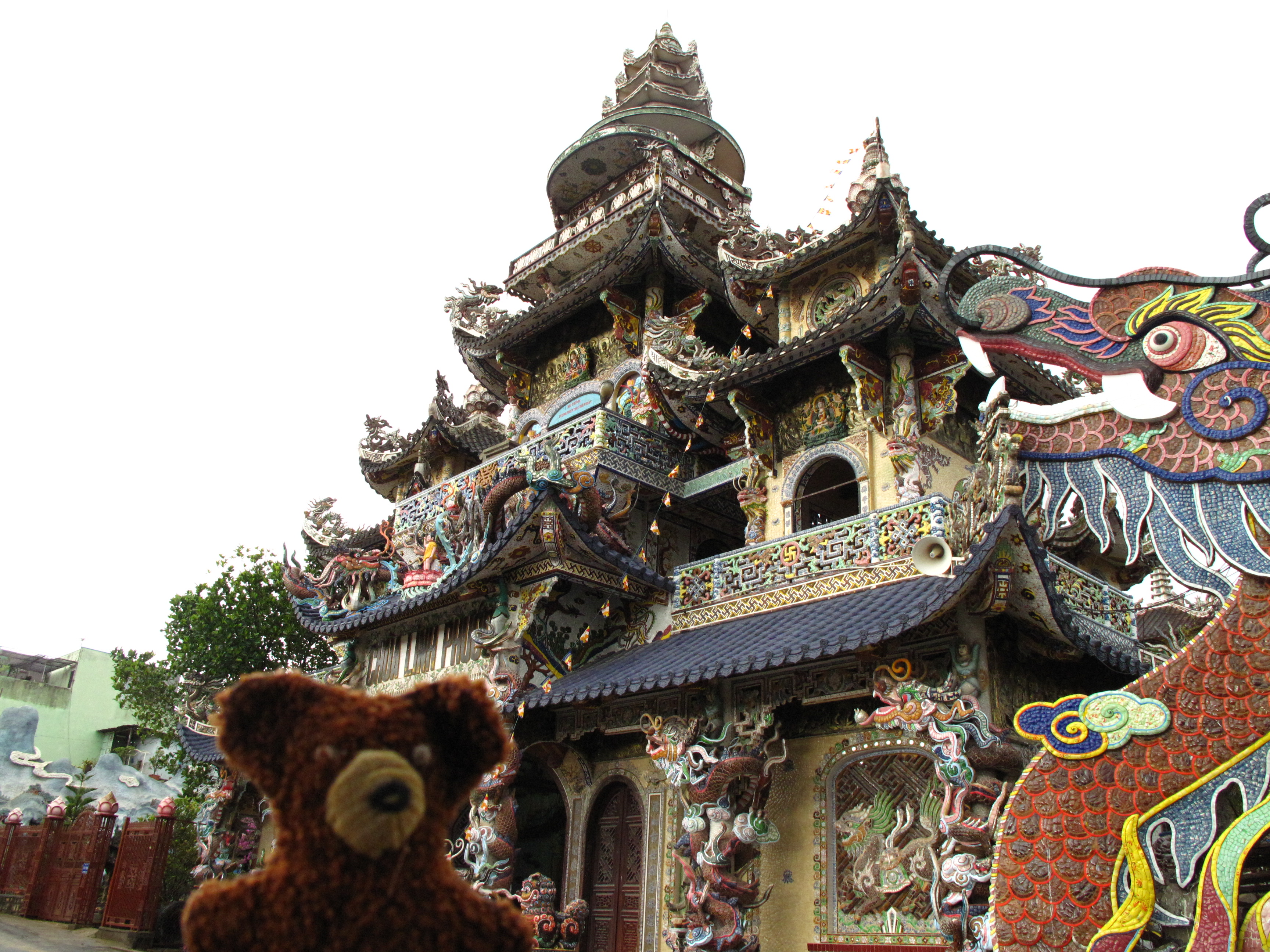 Kurz vor Da Lat machten wir an der sehr schönen und kribbelbunten Pagode Lam Vuong halt. Innen und außen war alles mit Glas- und Keramikscherben beklebt.