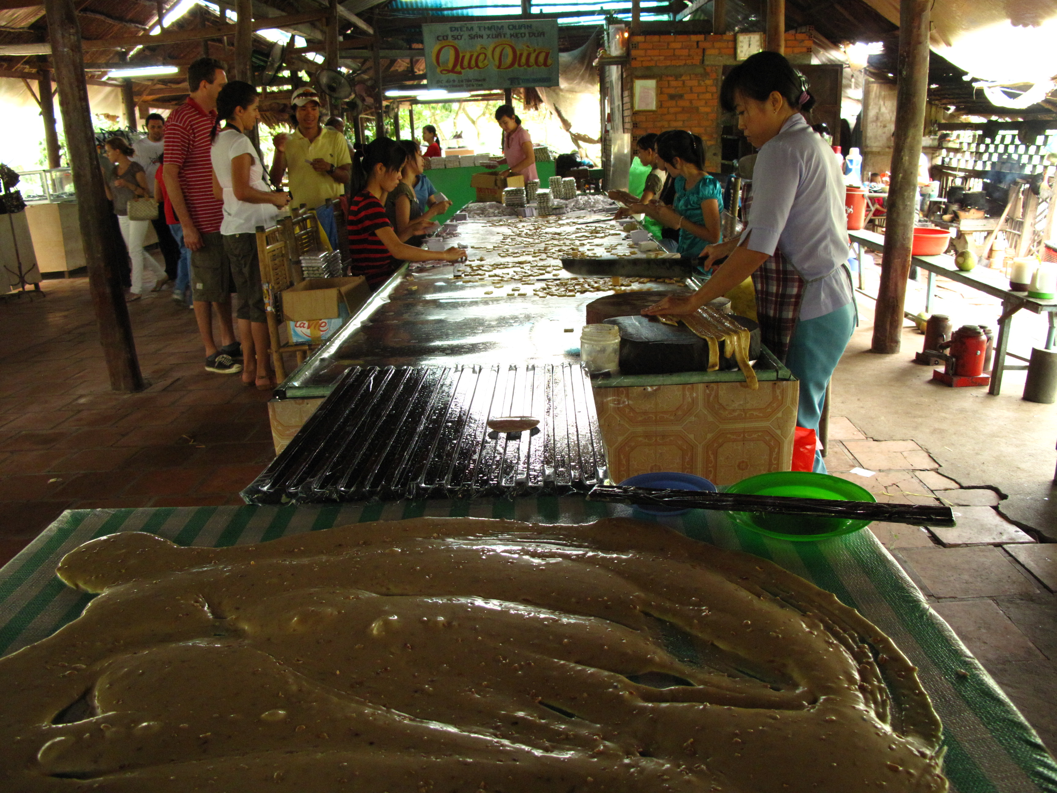 Der letzte Halt war auf einer anderen kleinen Insel wo Kokusnus-Kaubonbons hergestellt werden. Sehr lecker, hab mir gleich mal drei Packungen gekauft.