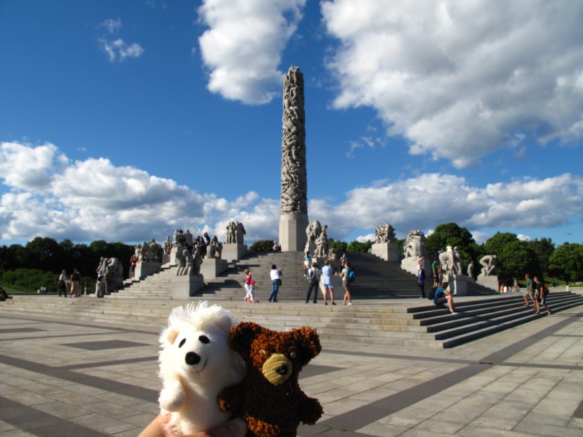 Weil wir noch Zeit hatten und die Sonne so schön vom Himmel strahlte, besuchten wir auch noch den Vigelands-Skulpturen-Park. Ein riesiges Gelände mit einer schönen Parkanlage. Hier stehen 212 Skulpturen von Gustav Vigeland in der Gegend rum. Am coolsten fand ich den Granit-Monolith aus 121 menschlichen Relief-Figuren.