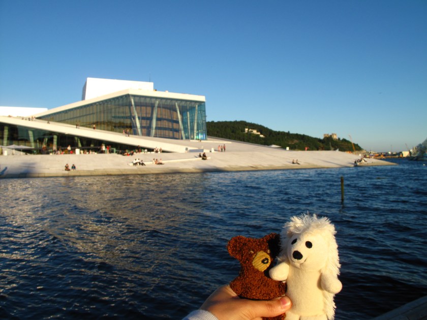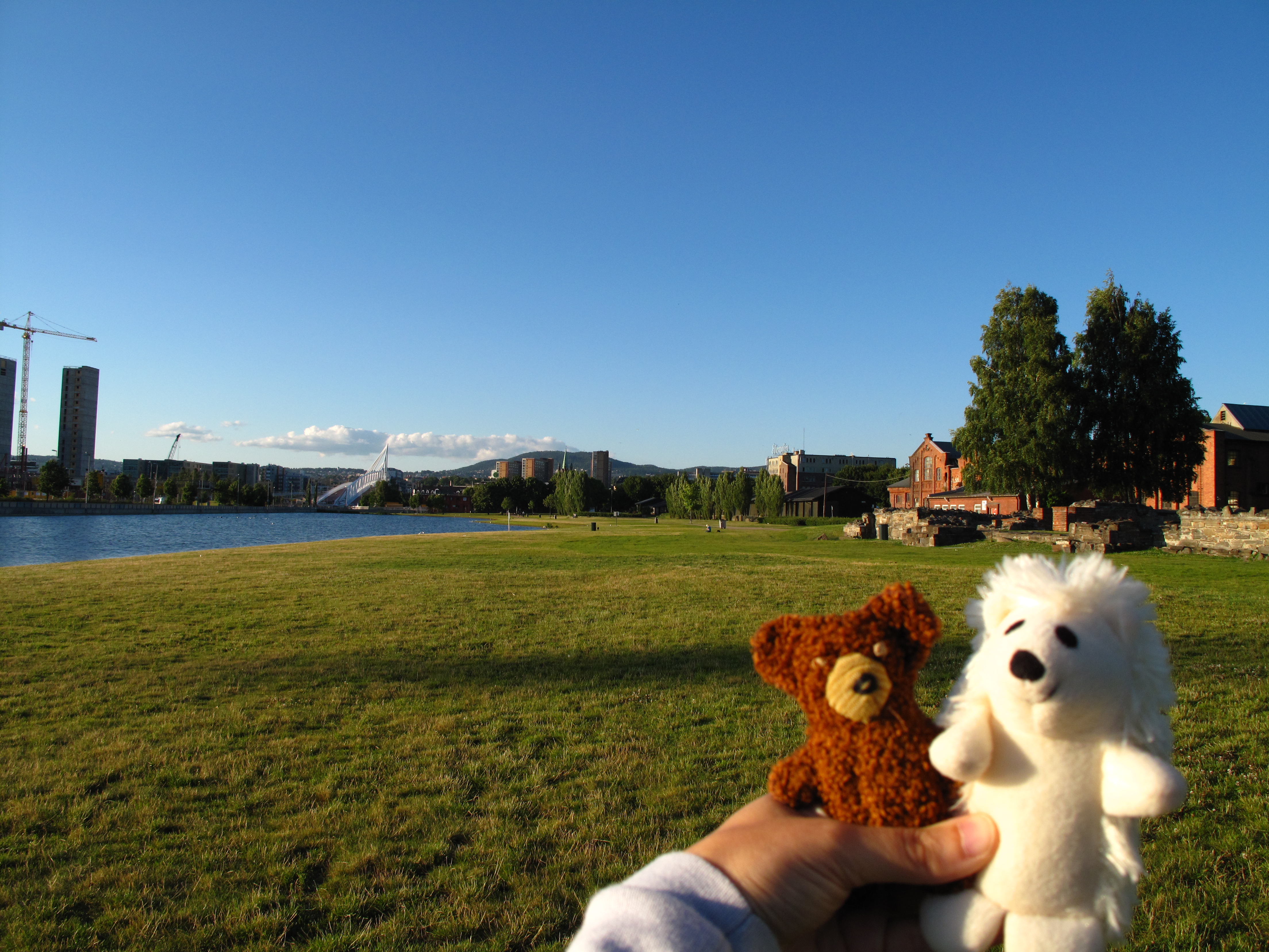 Mit platten Füßen fuhren wir mit der Straba zum Hotel und stärkten uns beim abendlichen All-You-Can-Fress-Buffet. Und weil die Sonne hier irgendwie nie untergeht, fuhren wir mit der Straba zum Middelalderparken. Hier hat man einen Superblick auf die Oper und die neuen glänzenden Hochhäuser.