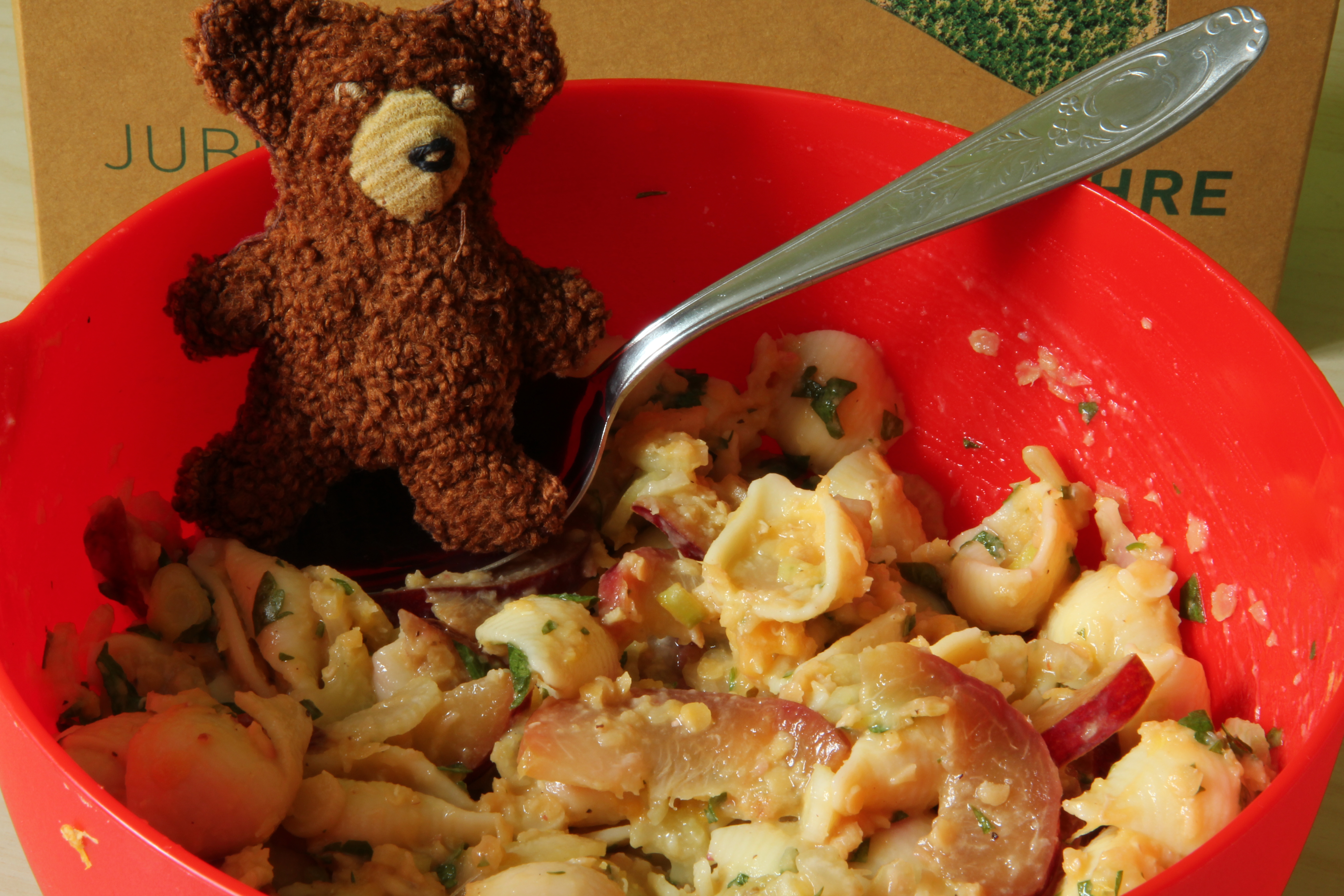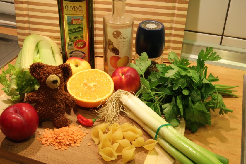Und weil Nudelsalat so lecker ist, gibts heute noch ein Rezept 🙂 (auch weil ich noch rote Linsen übrig hab).