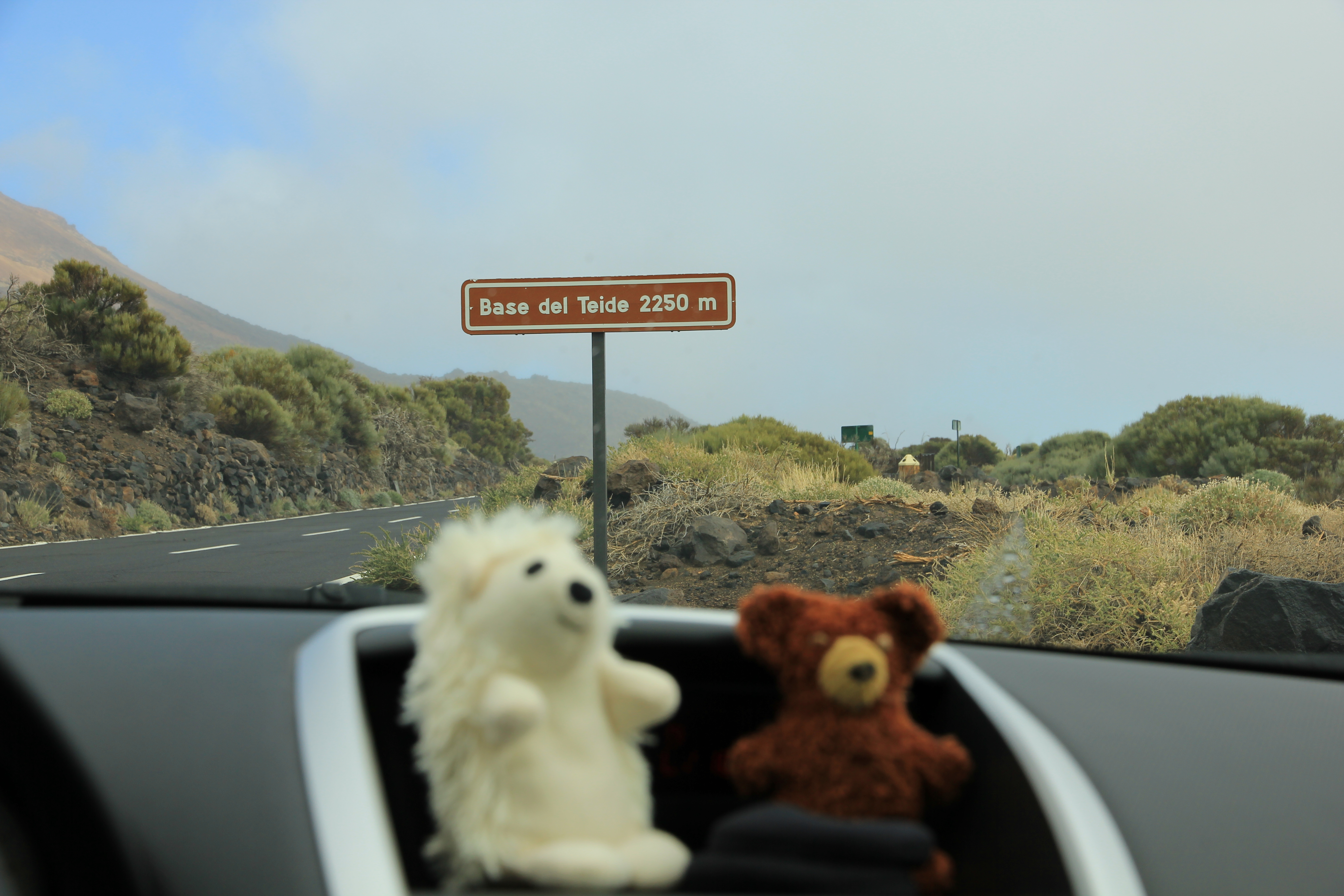 Nach diesem tollen Fotoshooting fuhren wir weiter Richtung Süden und hofften, dass auch auf der Abfahrt nach Chio schönes Wetter ist. Aber leider zogen kurz darauf wieder dicke Nebelwolken vor unsre Nase und es wehte ein fieser Wind. Allerdings waren wir dieses Mal auf die Bedingungen vorbereitet. Dick eingemummelt wagten wir einen Rundgang um den Mirador del Chio. Den Igel hats fast weggeweht ;-).