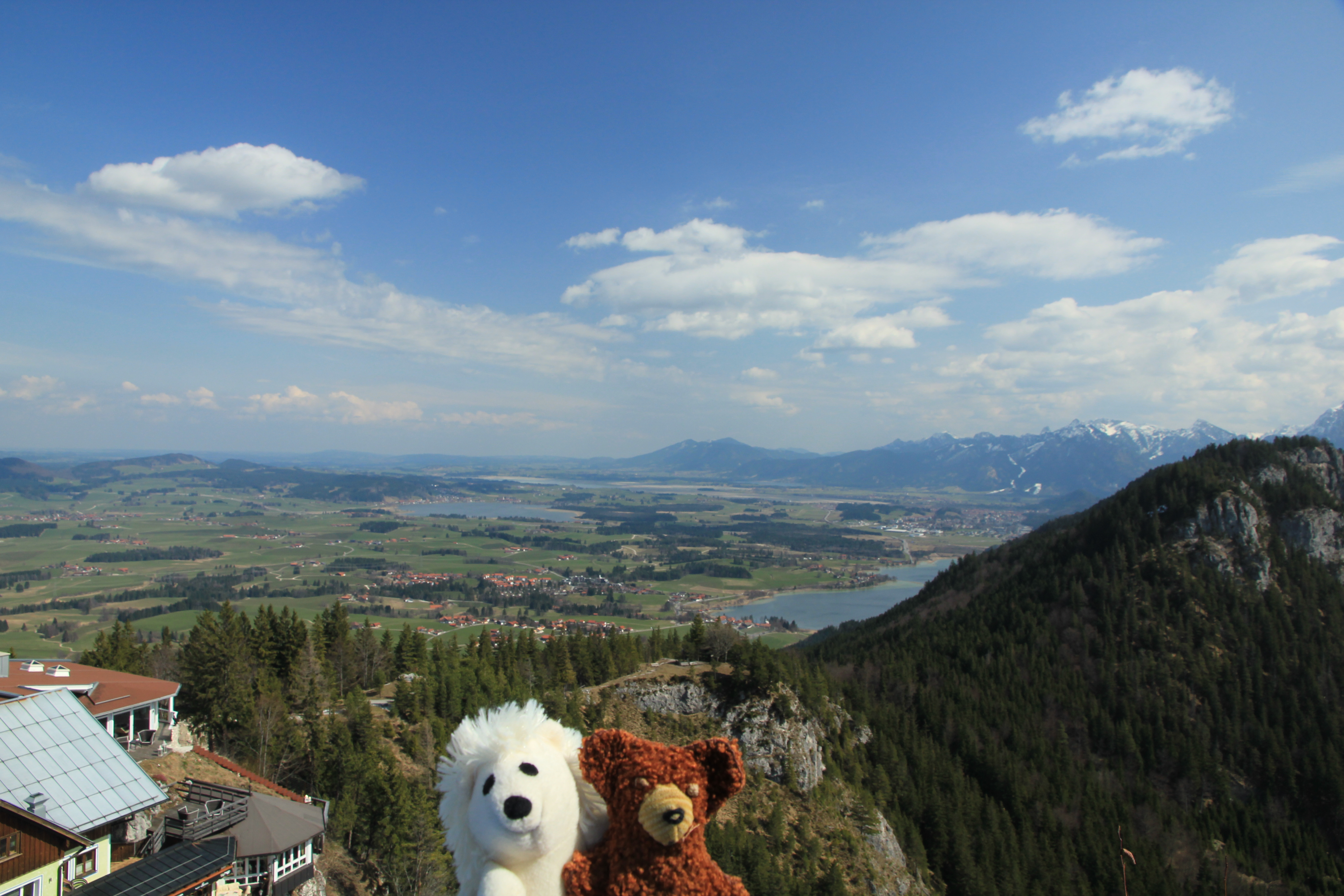 Auf einem bewirtschafteten Waldweg wanderten wir gemütlich ohne auf und ab zum Schwansee. Von hier aus hatte man einen tollen Blick auf Schloss Neuschwanstein und Hohenschwangau. Weiter gings bergauf zum Kalvarienberg. Hier steht eine tolle Aussichtsplattform von der man auch wieder die beiden Schlösser und auch Füssen toll sieht.