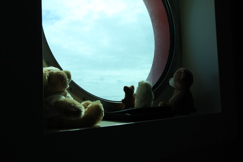 Kurz zum Hintergrund: Der Eisigel, der QM2-Bär, der Grinse-Bär und ich haben die Ehre unsere zwei Sponsoren auf ihrer Fahrt nach Greenland aka Grönland zu begleiten. In 19 Tagen werden wir über Schottland, die Orkney-, Shetland- und Färöer-Inseln und Island nach Grönland schippern. Unser schwimmendes Hotel auf dieser Entdeckungsreise wird die MS Fram von Hurtigruten sein.