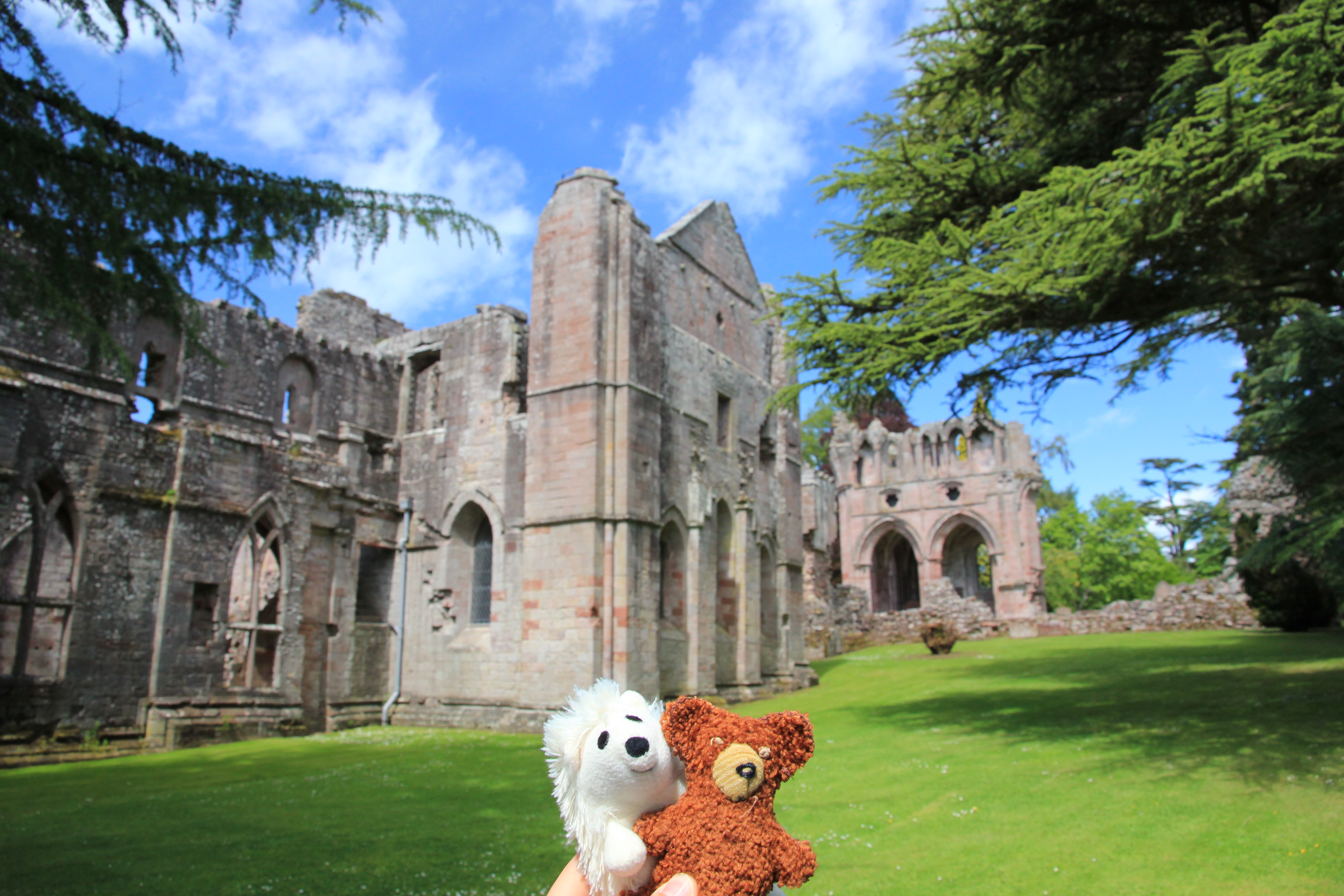 Nach einer unruhigen Nacht freuten wir uns auf festen Boden unter den Füßen. Gegen 10 Uhr legten wir in Leith an. Leith ist ein Stadtteil von Edinburgh und hier liegt auch der Hafen, der ca. 3km von der Innenstadt entfernt ist. Heute unternahmen wir einen Ganztagesausflug. Erster Halt nach einer schönen Fahrt durch das schottische Middleland war die Dryburgh Abbey. Das Kloster Dryburgh wurde um 1150 erbaut und wurde, wie so viele Klöster, leider mehrfach von den Engländern verwüstet. Um 1545 wurde das Kloster letztmalig zerstört und ist seitdem nur noch eine friedvolle Ruine mit gut erhaltenem Kreuzgang.