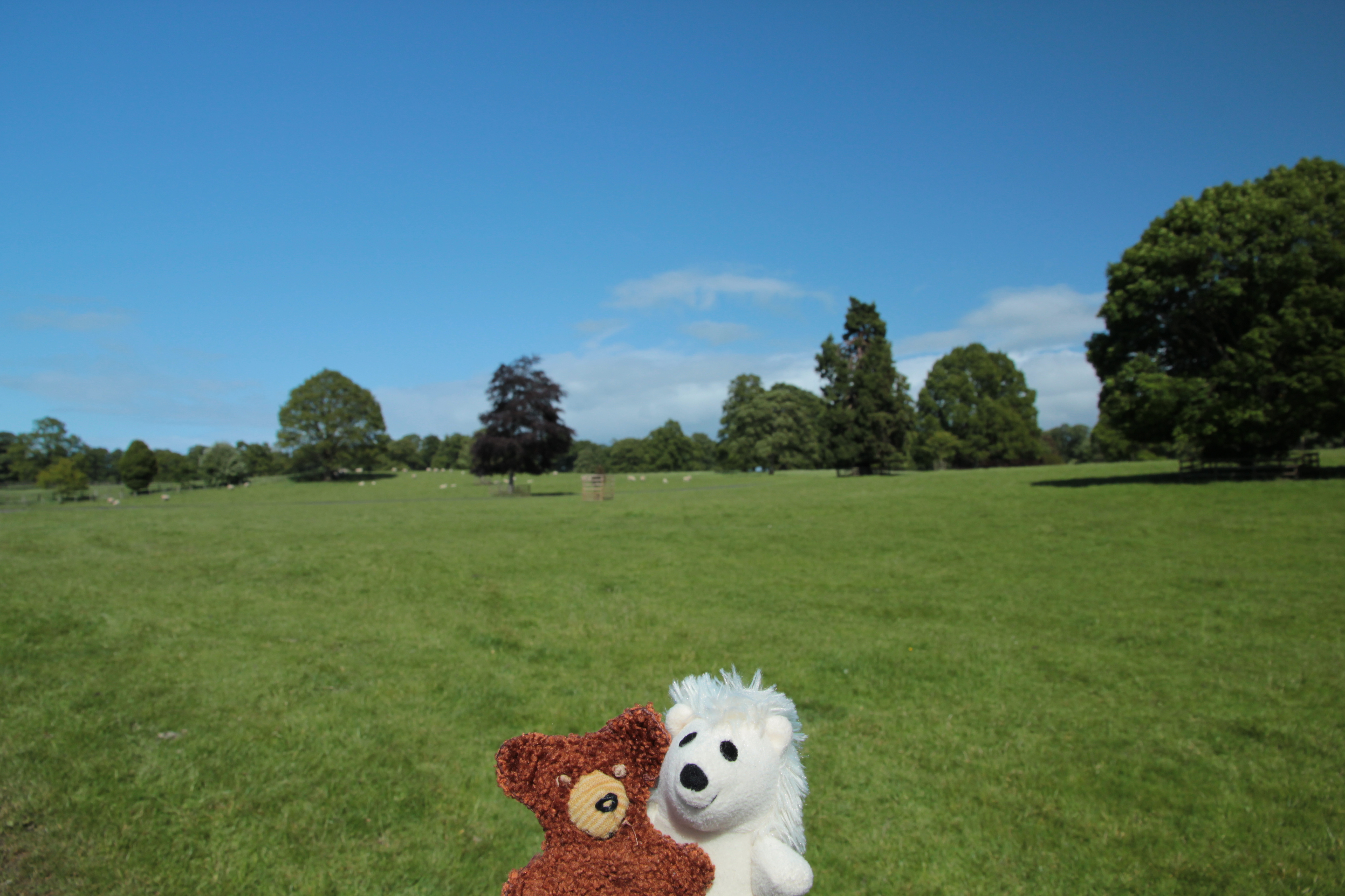 Wir schlenderten durch die Räume mit französischen Möbeln, schönen Kunstwerken und Tapeten. Alles ganz nett, aber irgendwie überall das Gleiche J. Also statteten wir den einheimischen Schafen und Kühen auf den riesigen Weiden noch einen Besuch ab.
