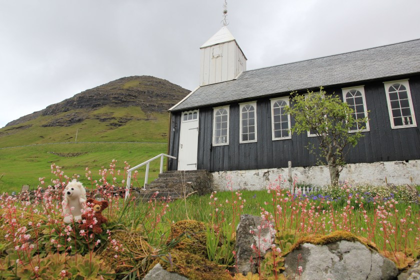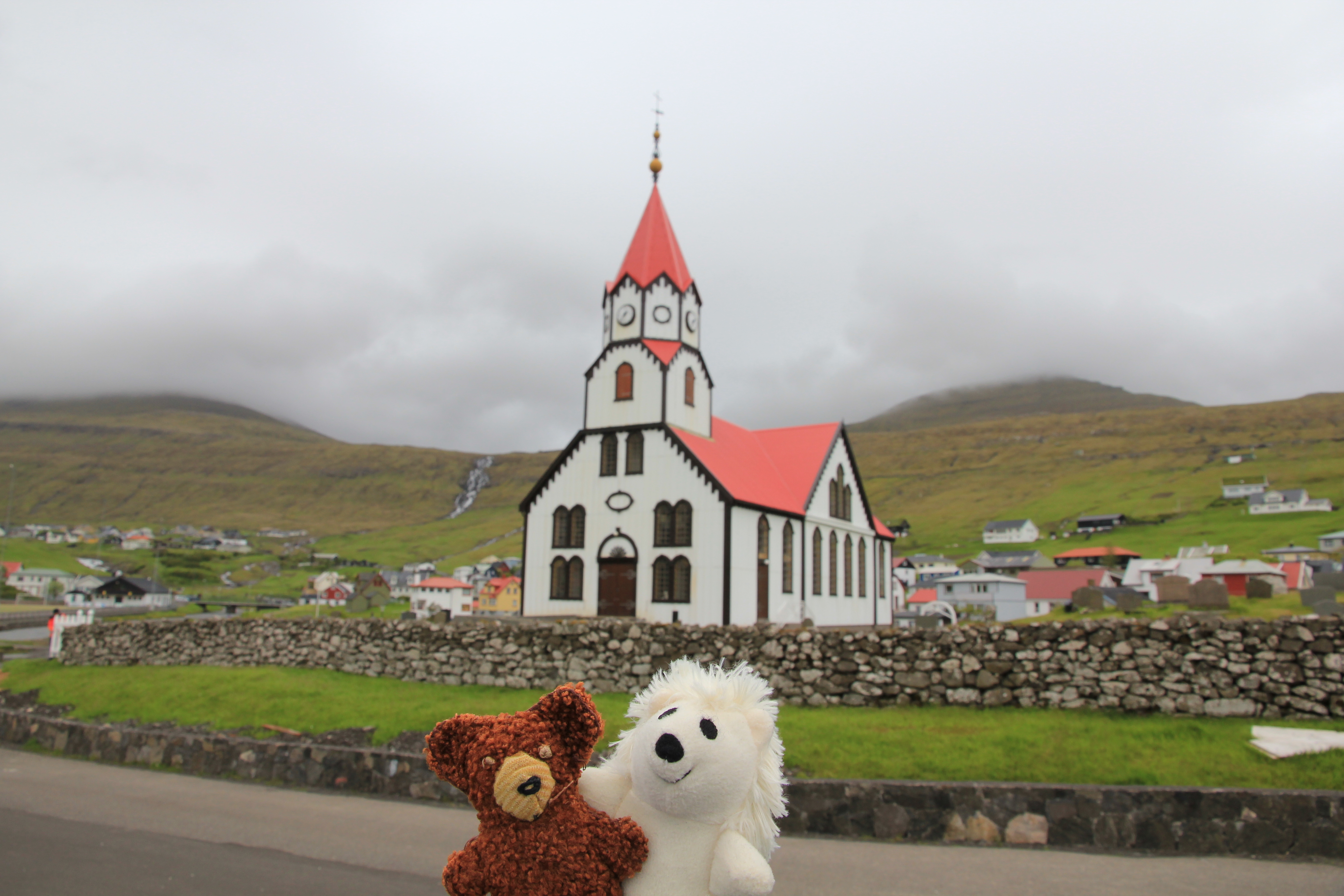 Am Nachmittag startete unsere Rundfahrt auf die Nachbarinsel Vagar. Entlang toller Fjorde und schönen Wasserfällen erreichten wir den Tunnel um nach Vagar zu kommen. Nach kurzer gruseliger Dunkelheit erreichten wir Vagar und besuchten als erstes die Stadt Sandavagur. In der schönen Holzkirche steht einen Runenstein aus dem 13. Jh., der besagt, dass sich der Wikinger Torkil Onundarson als Erster hier niederließ.