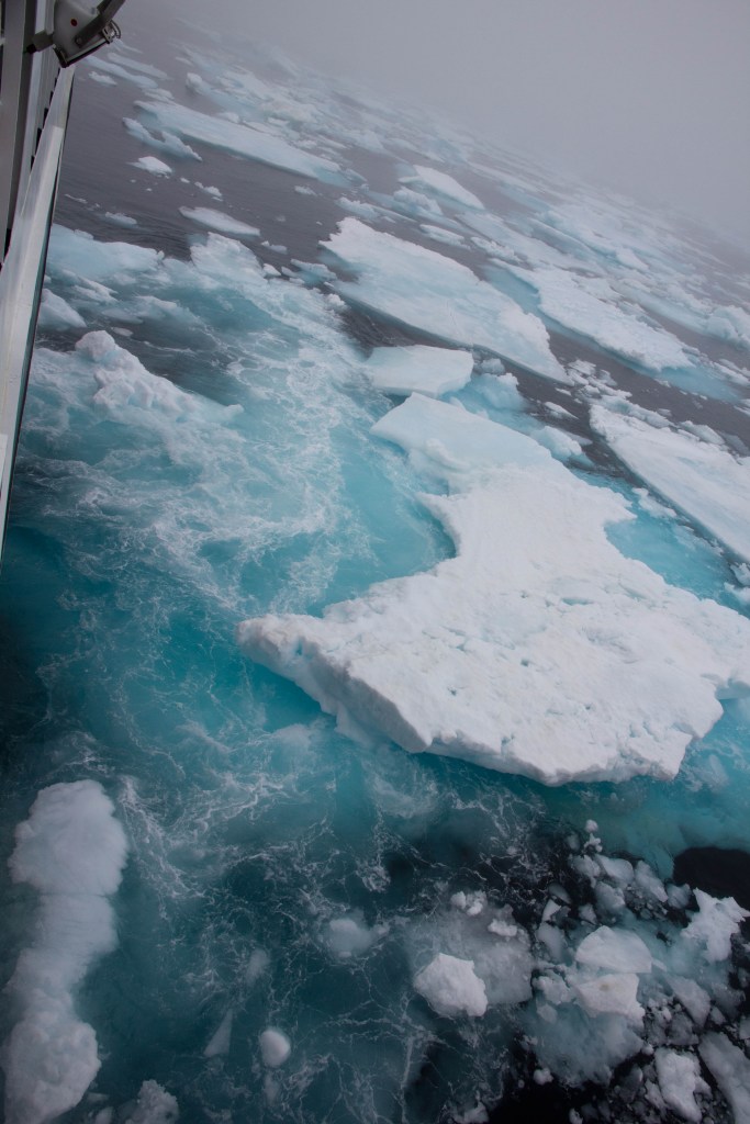 Dies war also nun der dritte Tag hintereinander auf See. Nach einer Weile Trübsal blasen entschloß ich mich etwas frische Luft zu schnappen. Das tolle Naturschauspiel entschädigte dann doch etwas für die verpasste Anlandung. Ist das nicht ein tolles blau in dieser mystischen Wetterlage :-)? Der Nebel vernebelte mir übrigens den ganzen Tag die Sicht. Aber naja, so ist es doch auch scheee.