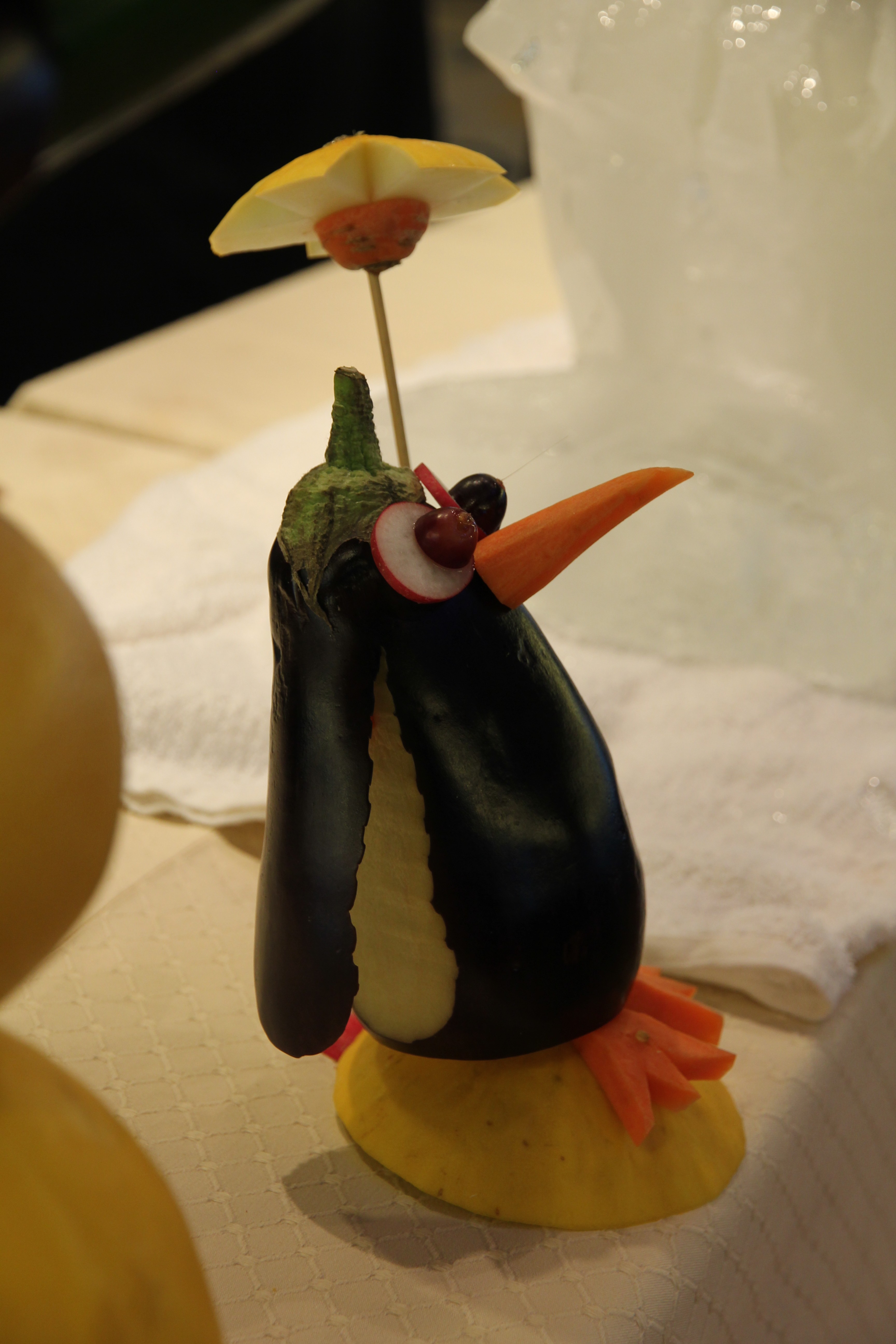 Am Abend gabs noch eine nette Unterhaltung für uns Passagiere. Aus Obst, Gemüse und Eis schnitzen drei Meister ihres Faches lustige Figuren. Ich fand ja den Pingu echt knuffig: