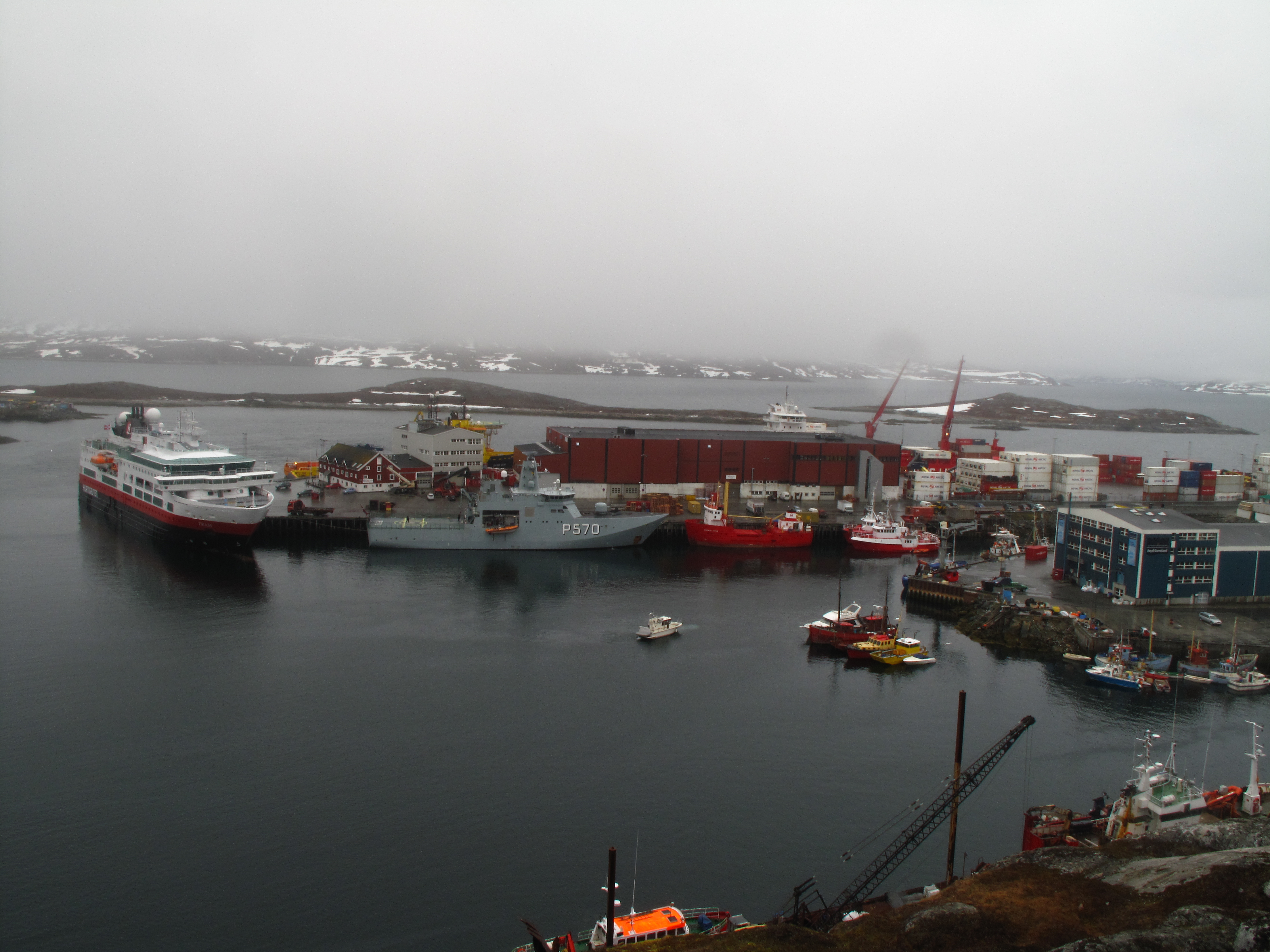 Aufgrund der Vorkommnisse der letzten Tage waren wir zeitlich gut im Plan und bereits um 8 Uhr in Nuuk (sonst erst 13 Uhr). Das Anlegemanöver im Hafen war lustig anzuschauen. Dem Kapitän des dänischen Küstenwachenschiffes war dagegen etwas mulmig zumute. Ich kann gar nicht nachvollziehen warum :-). Er fühlte sich wohl irgendwie zugeparkt (rechts unten im Bild ist unsere Reling):