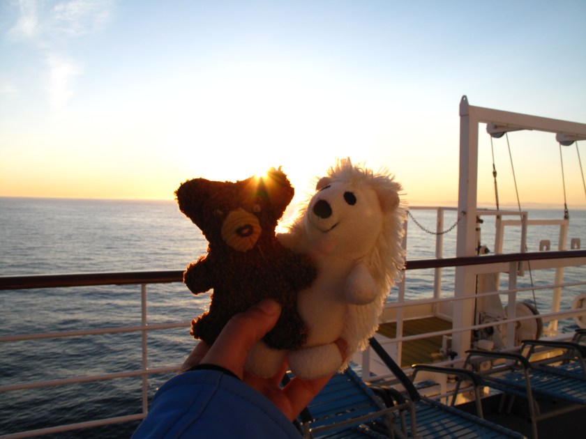 Die Wettervorhersage für diesen Tag lautete auf jeden Fall: Sonnenschein. Eisigel und ich stellten schon ganz früh den Wecker um die ersten vorbeischwimmenden Eisberge und die Einfahrt nach Ilulissat nicht zu verpassen. Hier eine Aufnahme von 5:45 Uhr *gähn*.