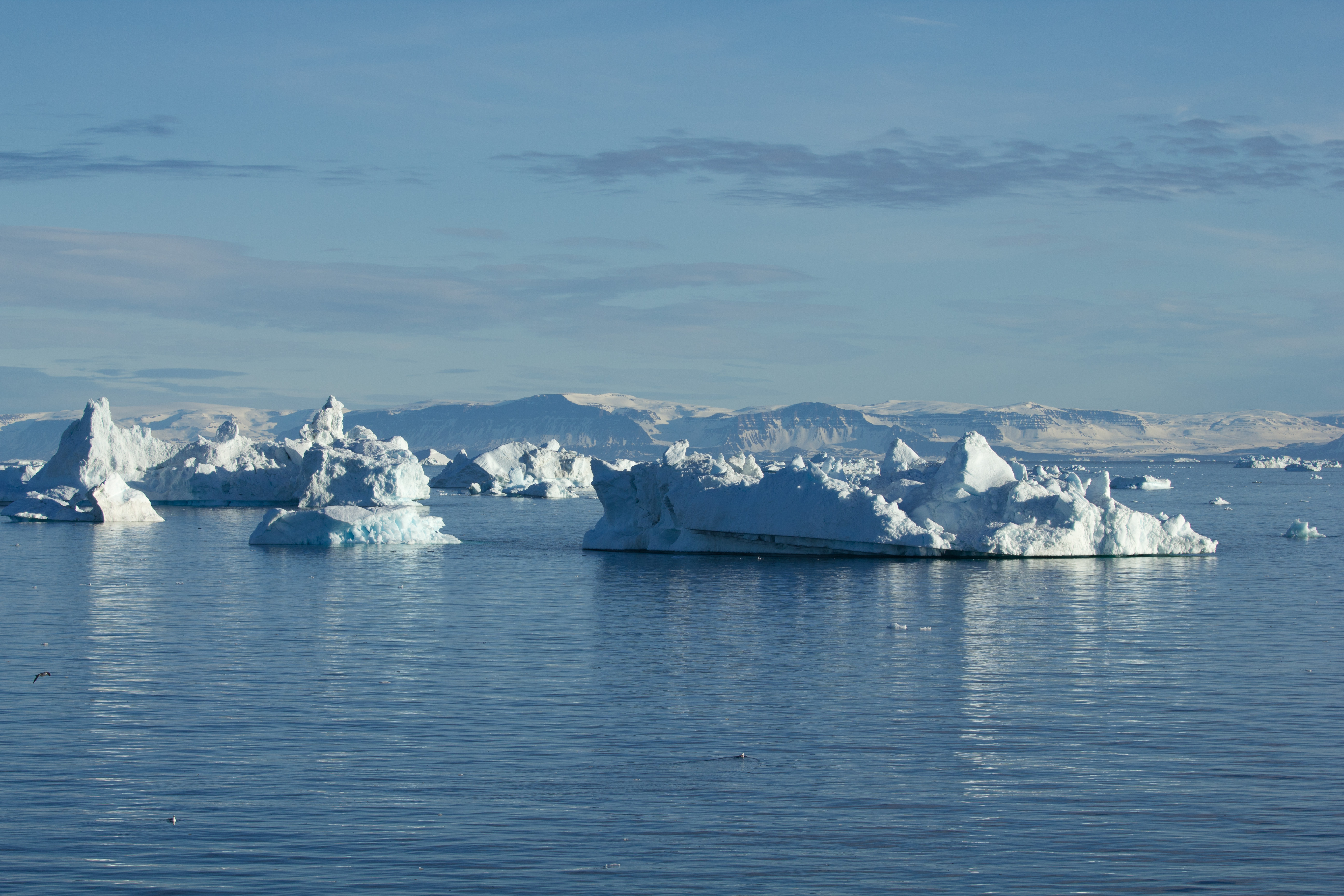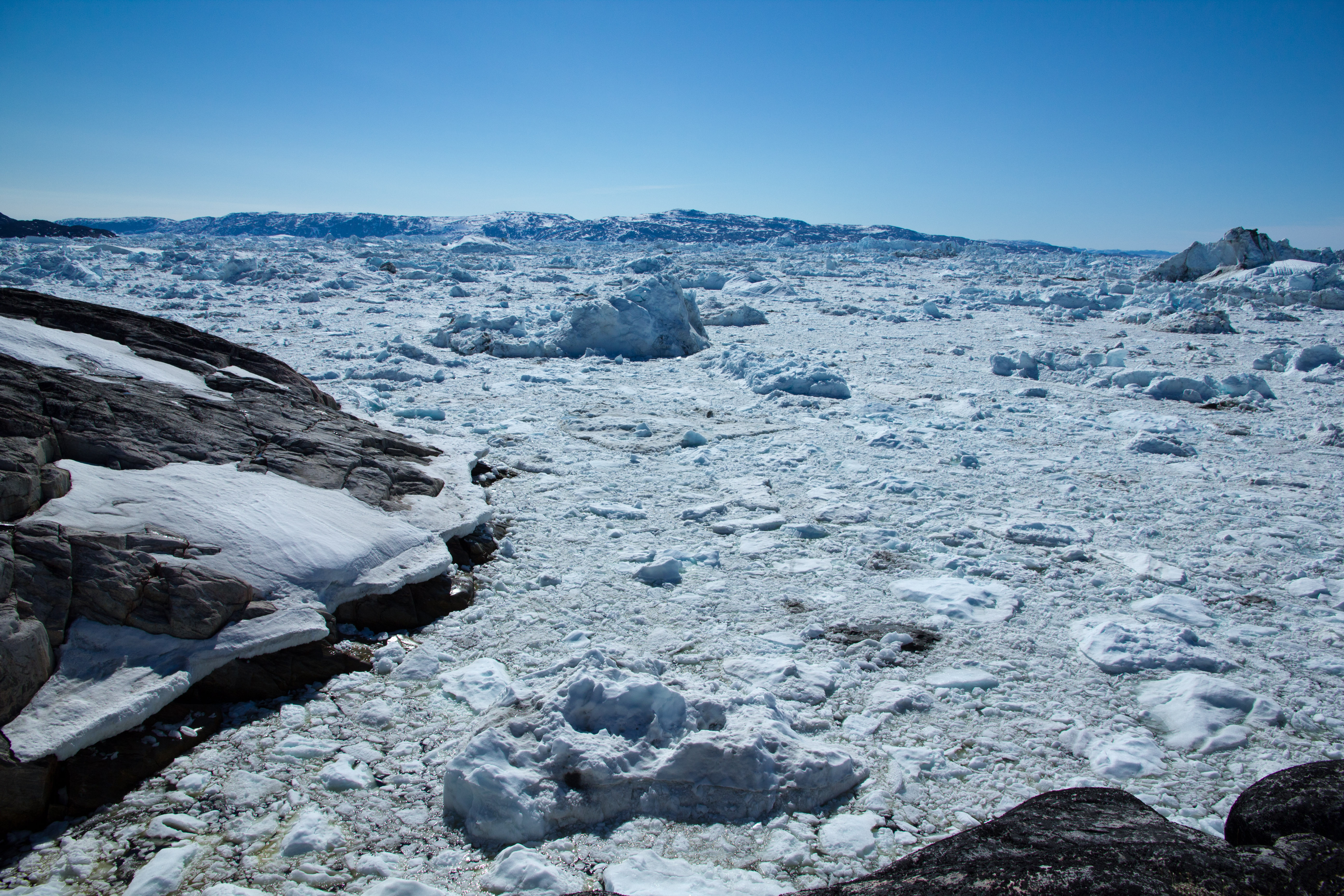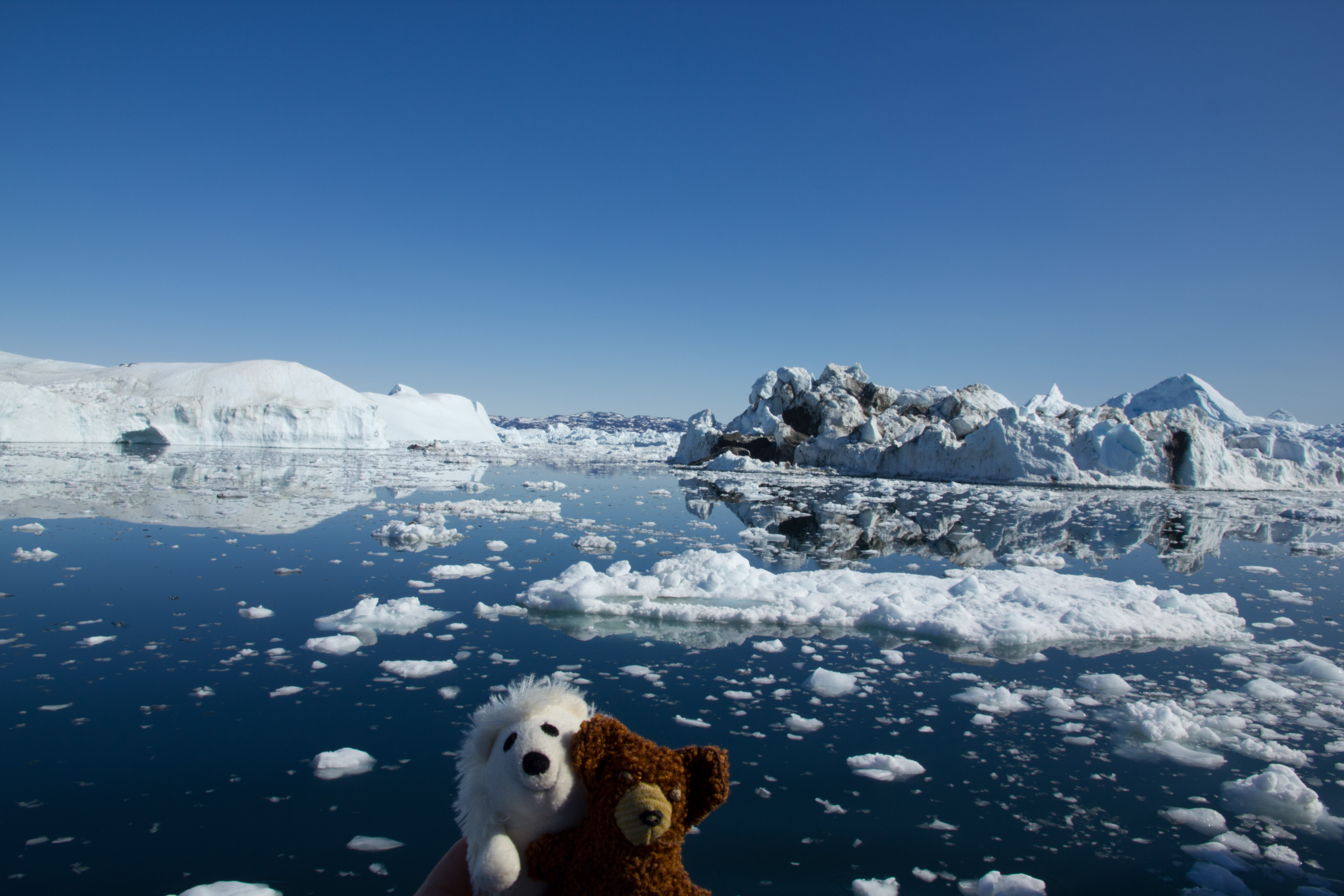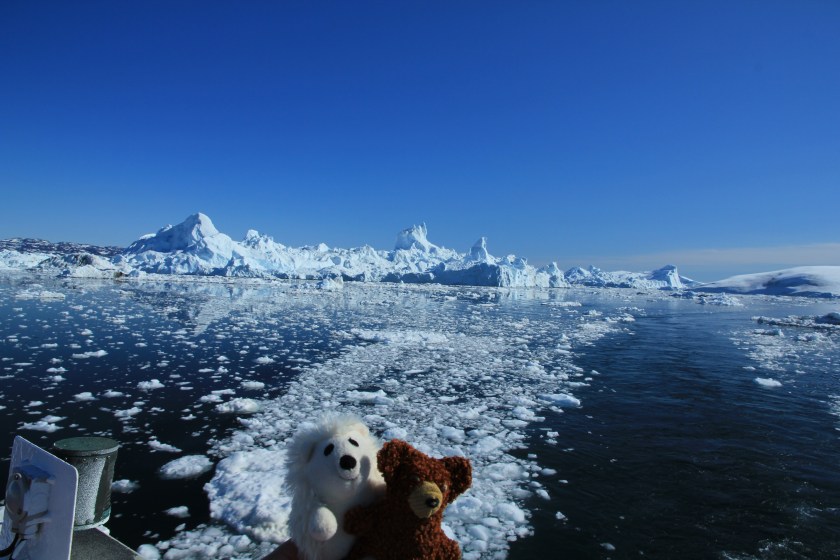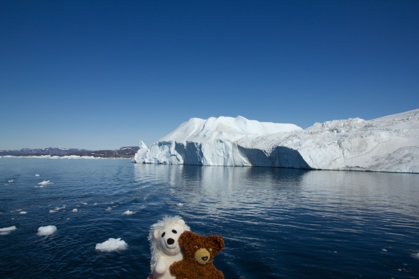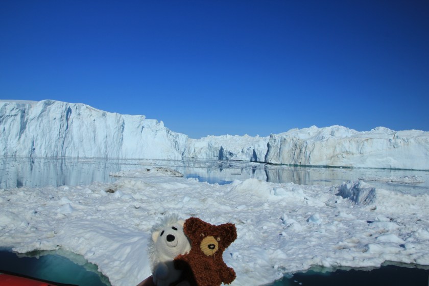Das Besondere an dem Fjord ist der Eisstau an der Mündung zur Disko-Bucht. Da sich die Tiefe des Fjords von der Abbruchkante im Landesinnere bis zur Mündung in die Bucht von 1200m auf nur noch 200m reduziert, bleiben die abgebrochenen großen Eisbrocken in der Mündung hängen. Drüber kommen nur die „kleineren“ Brocken mit einem Gewicht von rund 200.000 bis 300.000 Tonnen. Der ein oder andere Eiswürfel ist schon bis nach New York geschwommen und hat vielleicht auch die Titanic mitgenommen :-).