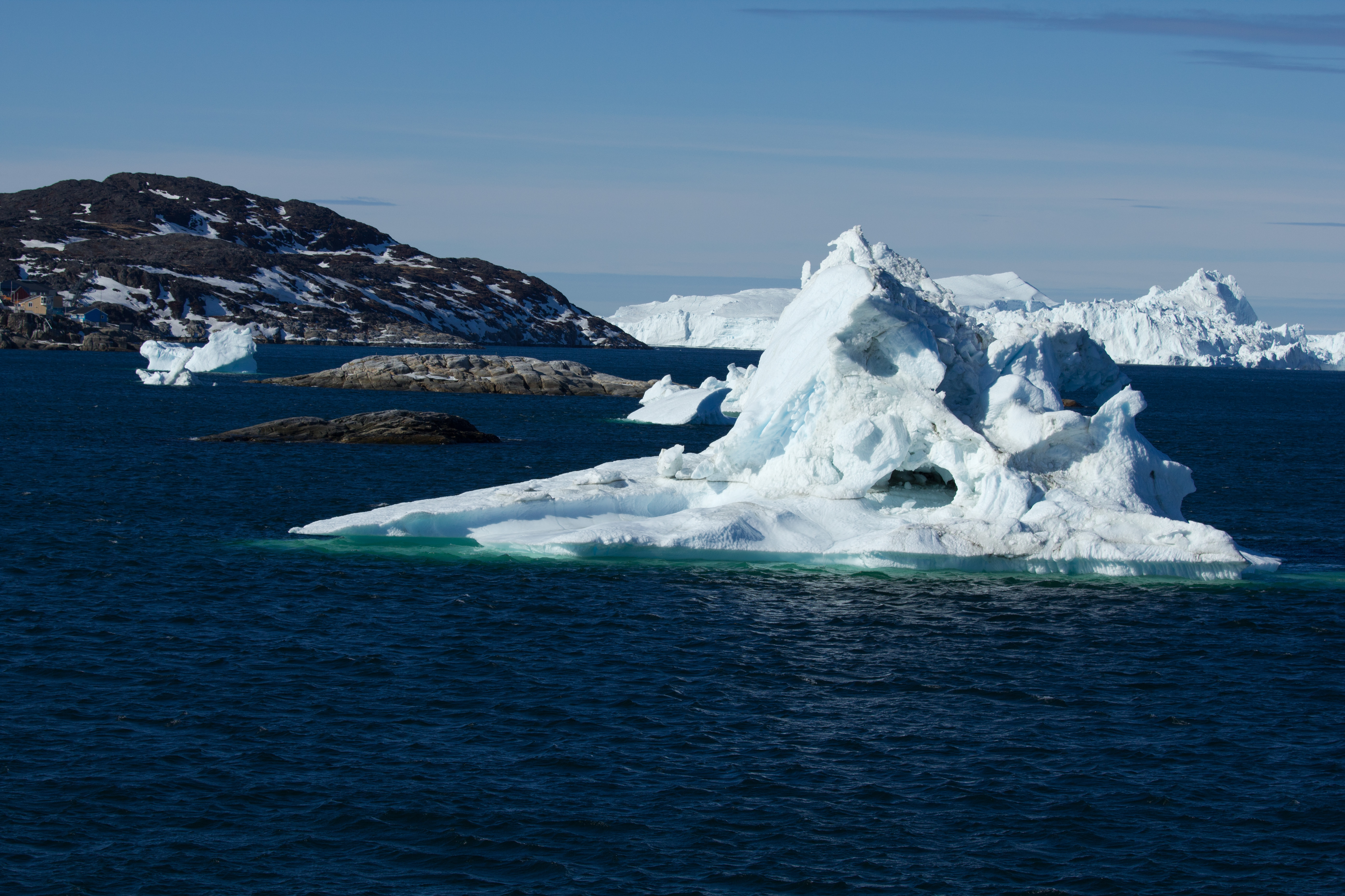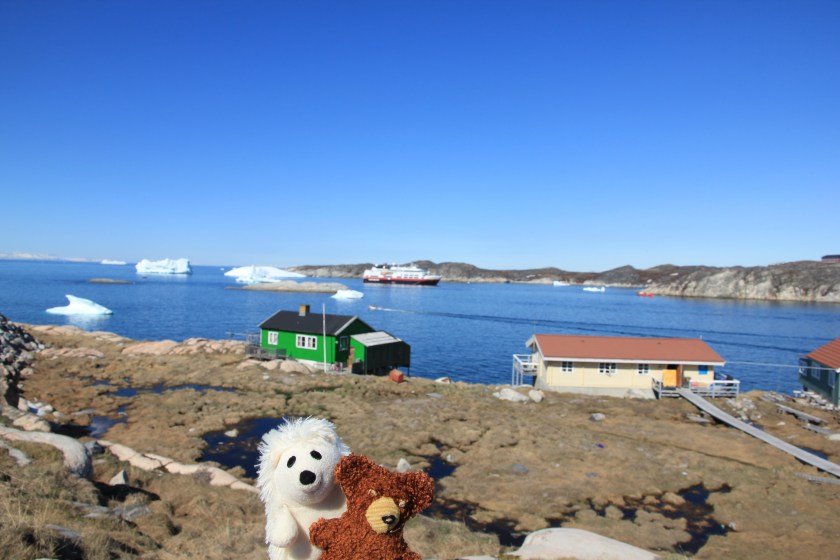 Viele Fotos und Eisberge später erreichten wir die Einfahrt von Ilulissat. Ein paar fette Brocken lagen nicht weit entfernt vom Hafen. Unser Kapitän parkte die MS Fram auch gleich mittendrin.