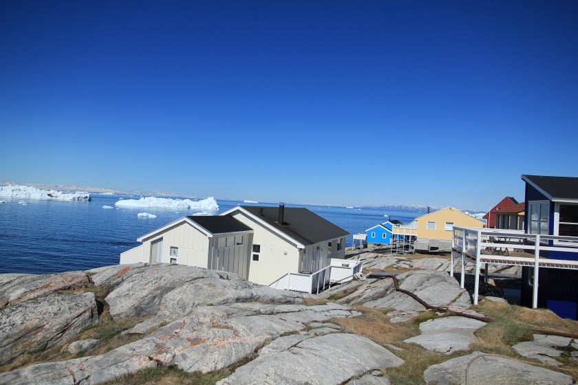 Nachdem wir die Ruhe und Schönheit ausgiebig genossen hatten, stiefelten wir glücklich beseelt zurück nach Ilulissat. Auf der Küstenstraße wanderten wir zum Hotel Icefjord. In eines dieser tollen Häuser könnte ich auch einziehen :-):