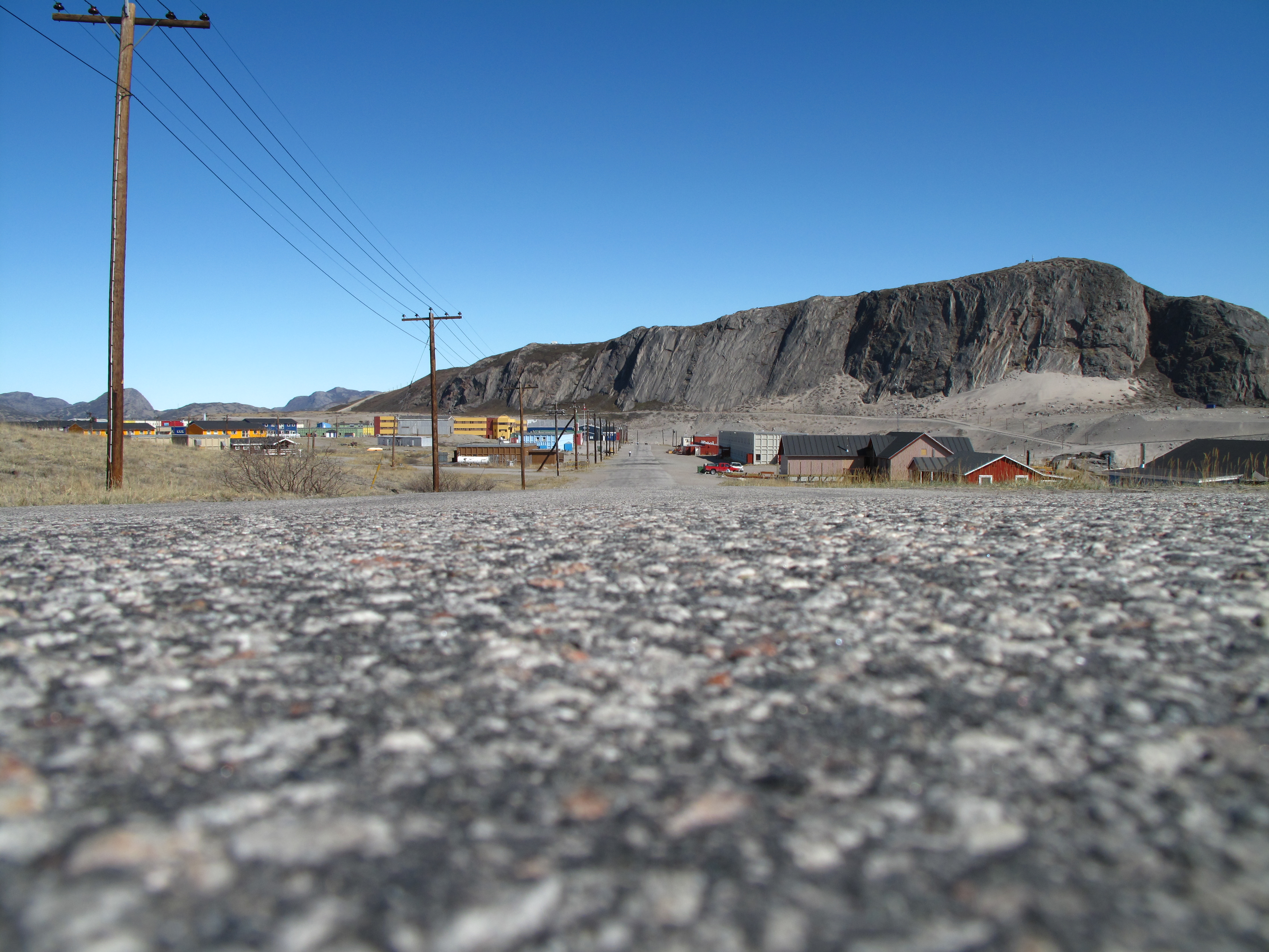 Von der vielen Sonne war ich schon ganz Gaga im Kopf ;-). Nach ca. 1 1/2 Stunden holpriger Rückfahrt waren wir wieder zurück in Kangerlussuaq. Die Stadt ist im Grunde keine Stadt sondern eher der internationale Flughafen des Landes mit ein paar Blechhütten drumrum. Hier kommen rund 90% aller Reisenden nach Grönland an. Ursprünglich war Kangerlussuaq ein US-Armeestützpunkt (Air Base Bluie West 8). Ende September 1992 wurde die Basis von den Amerikanern aufgegeben und zum symbolischen Preis von 1 US$ an Grönland verkauft. Heute leben hier 530 Einwohner. Die Gebäude der Stadt, vor allem im ehemaligen militärischen Teil, sind typische amerikanische Wohncontainer, die heute immerhin farblich angemalt wurden. Die haben da ja auch keine Steine zum Häuslebauen ;-). Alles nur Sand und Eis *g*. Man kommt sich vor wie im wilden Westen des 21. Jahrhunderts.