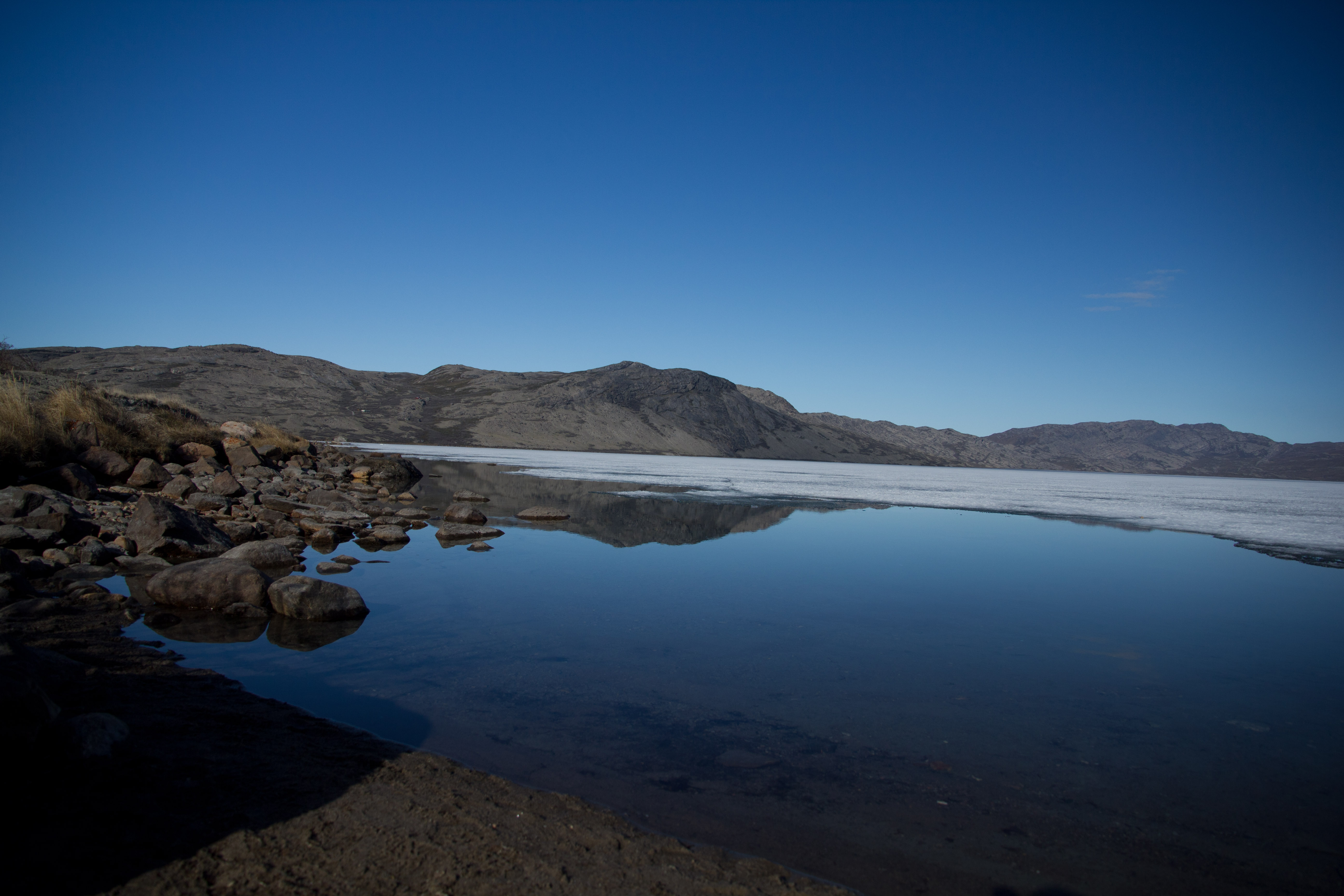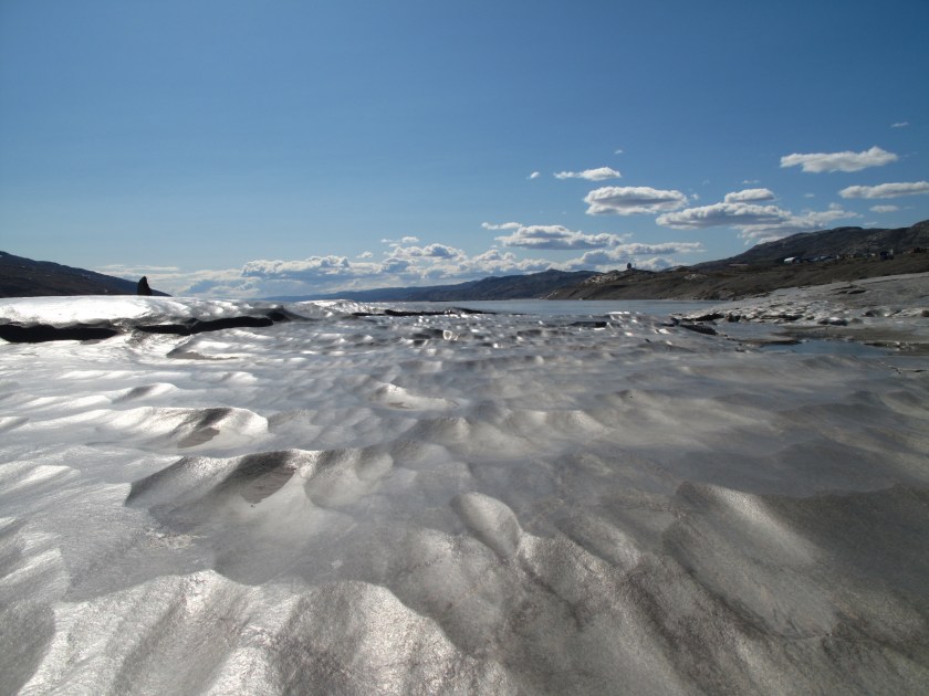 Am späten Nachmittag fuhren wir dann zu unserem Grillplatz beim Restaurant Roklubben. Direkt an dem noch halb zugefrorenen See Tasersuatsiaq, mampften wir bei herrlichem Sonnenschein frisch gegrilltes Rentier und Moschusochsen-Burger *lecker*. Die Salatauswahl war auch sehr erstaunlich reichhaltig.