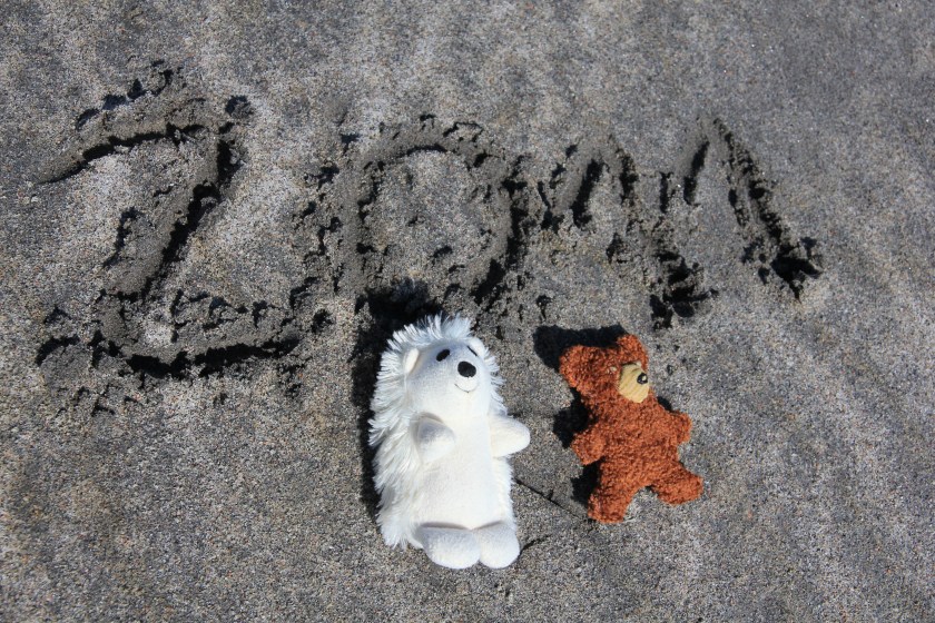 Der Strand hat hier wieder eine ganz andere Konsistenz und Färbung. Der Eisigel war wieder richtig eingesaut :-).