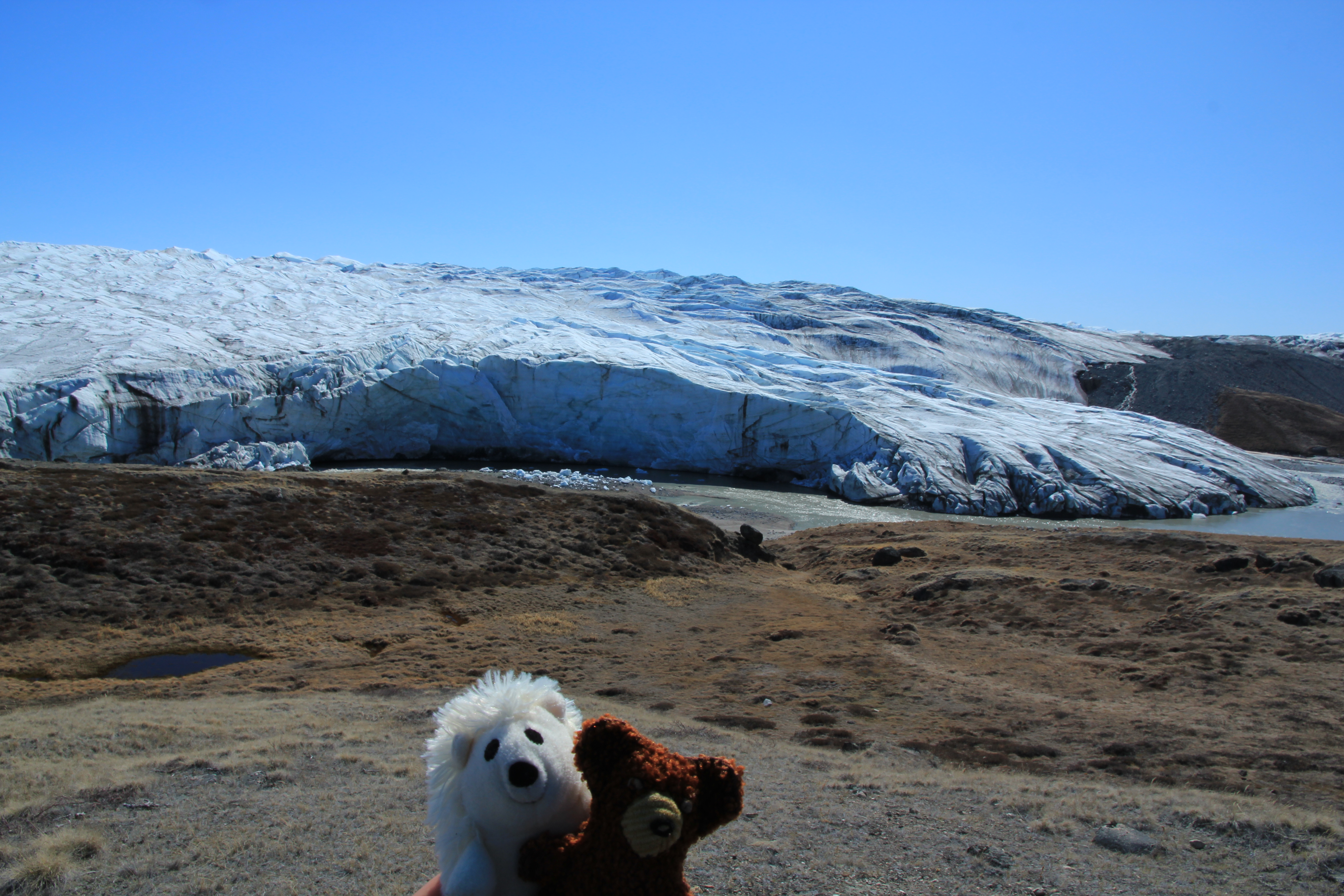 Auf dem langen Weg bekamen wir in weiter Ferne sogar ein Rentier und einen Moschusochsen zu sehen. Unser erster Halt war an einem See wo wir auch die ersten Ausläufer des Russels-Gletscher zu sehen bekamen.