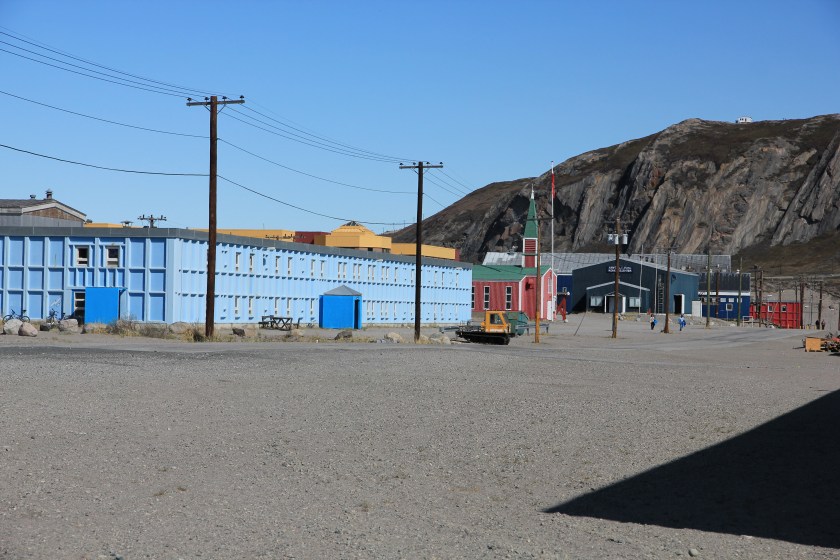 Als wir aufwachten, lag unser Schiff bereits vor dem Hafen Umiarsualivik. Ne ziemlich braune Brühe hier und naja, Schiffe können hier eigentlich auch nicht anlegen. Die Waren werden mit kleinen Booten vom Containerschiff abgeholt und zum „Hafen“ transportiert.