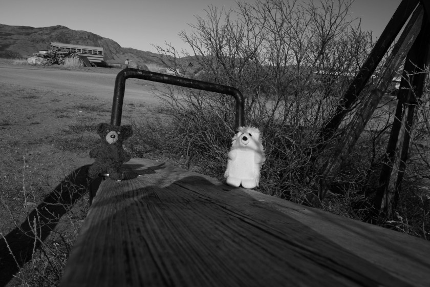 Selbst für junggebliebene Bären wie mich gibts noch was zum Rumtollen 🙂 Eisigel und ich haben ne alte verrostete Holzwippe gefunden und ausprobiert.