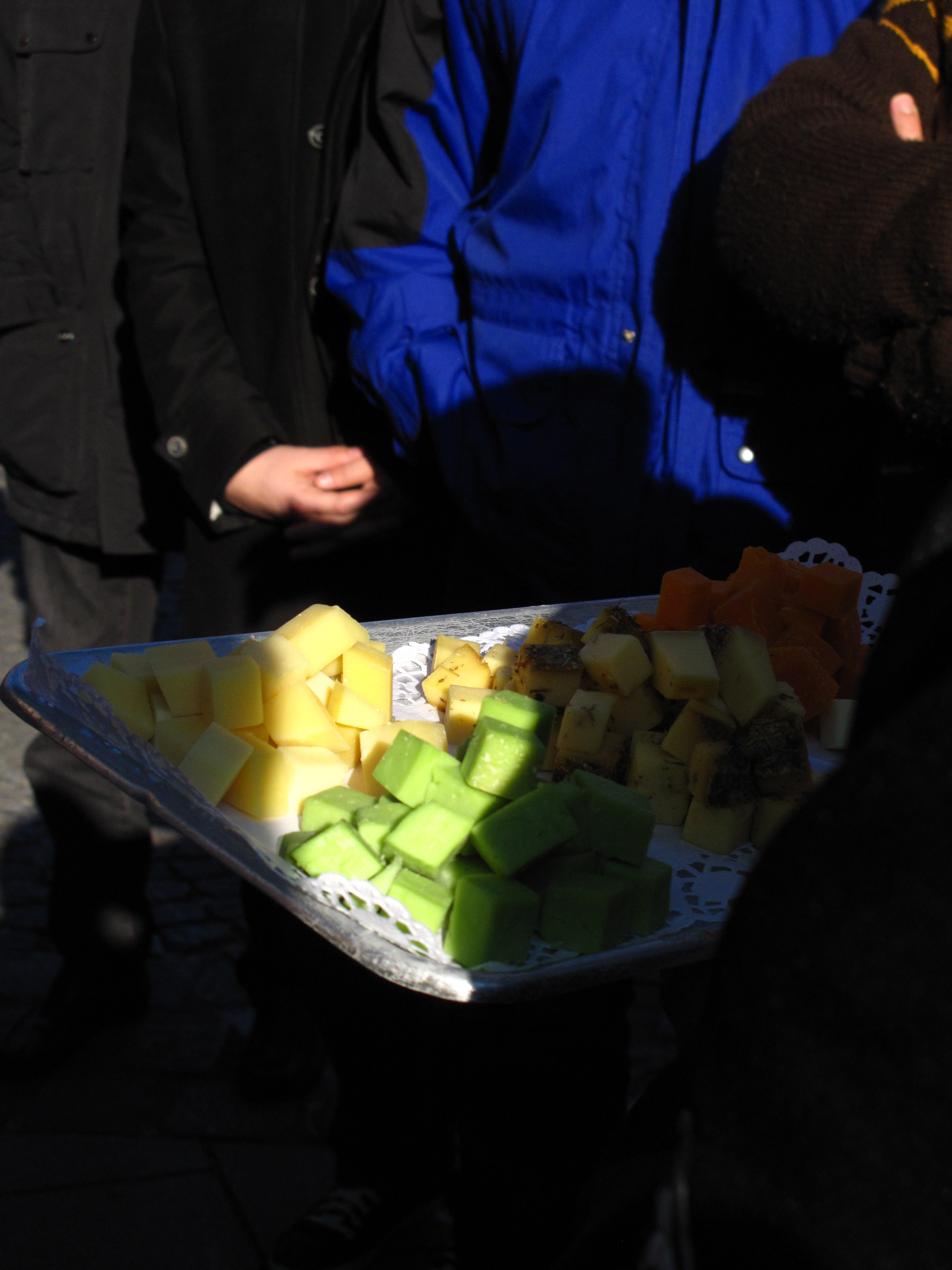 Nach einem kurzen Abstecher in die Heilig Geist Kirche, wo wir uns aufwärmten und die Geschichte des Brezl-Reiters erzählt bekamen, wartete das letzte Mahl für diesen Tag auf uns. Lecker bunter Käse.
