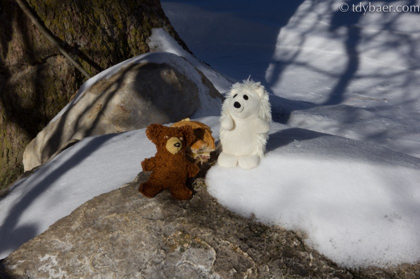 Hier können es Tdy & Eisigel aushalten. Frische luft, Sonne, Ruhe – einfach idyllisch. Nachdem wir unsere Seele etwas haben baumeln lassen, ging es weiter bergauf. Nach etwa einer halben Stunde und dem Wissen, was uns noch bevor stand, wurde die Entscheidung getroffen, dass der Aufstieg ohne Schneeschuhe heute nicht mehr machbar ist. Also ging es wieder bergabwärts Richtung Alm und weil dort noch so schön die Sonne schien, tollten wir noch lustig im Schnee rum und genossen die schöne Einsamkeit abseit von den Skipisten :-).
