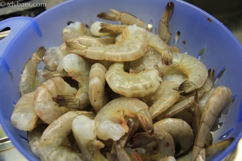Da bei meinen frisch aufgetauten Garnelen noch der Schwanz dran war, hatte ich erstmal was zu tun :-):