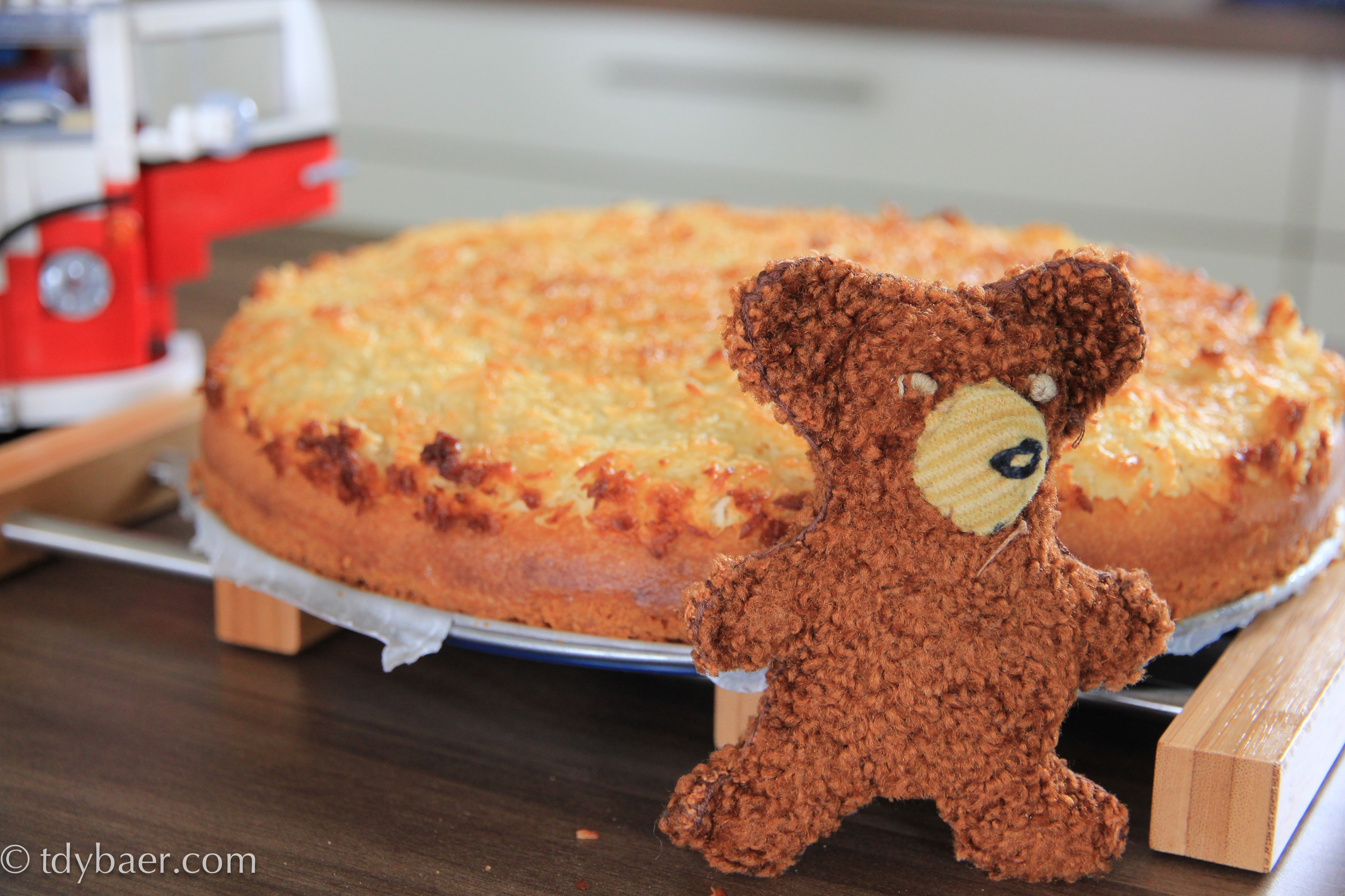 Nach den 30 Minuten den Kuchen aus dem Ofen holen und die Kokosmasse schön gleichmäßig obendrauf verteilen. Ab damit wieder in den Ofen und bei gleicher Hitze 15-20 Minuten (eher 20) weiterbacken. Falls es oben noch nicht braun ist, den Kuchen auf der obersten Schiene bei Oberhitze kurz nachbräunen. Na, sieht er nicht lecker aus:
