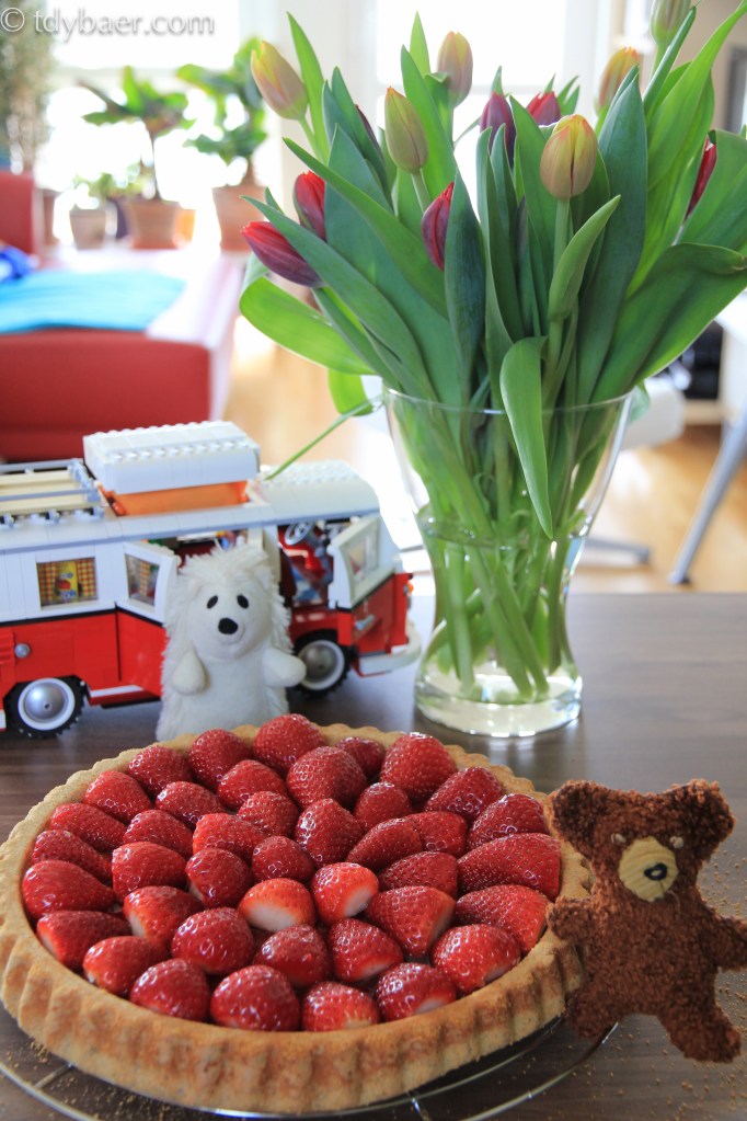 Heute beim Einkaufen konnte ich den köstlich aussehenden Erdbeeren doch nicht mehr widerstehen. Was gibt es leckereres als einen frischen Erdbeerkuchen? Den Tortenboden dazu hab ich natürlich auch schnell selbst angerührt.