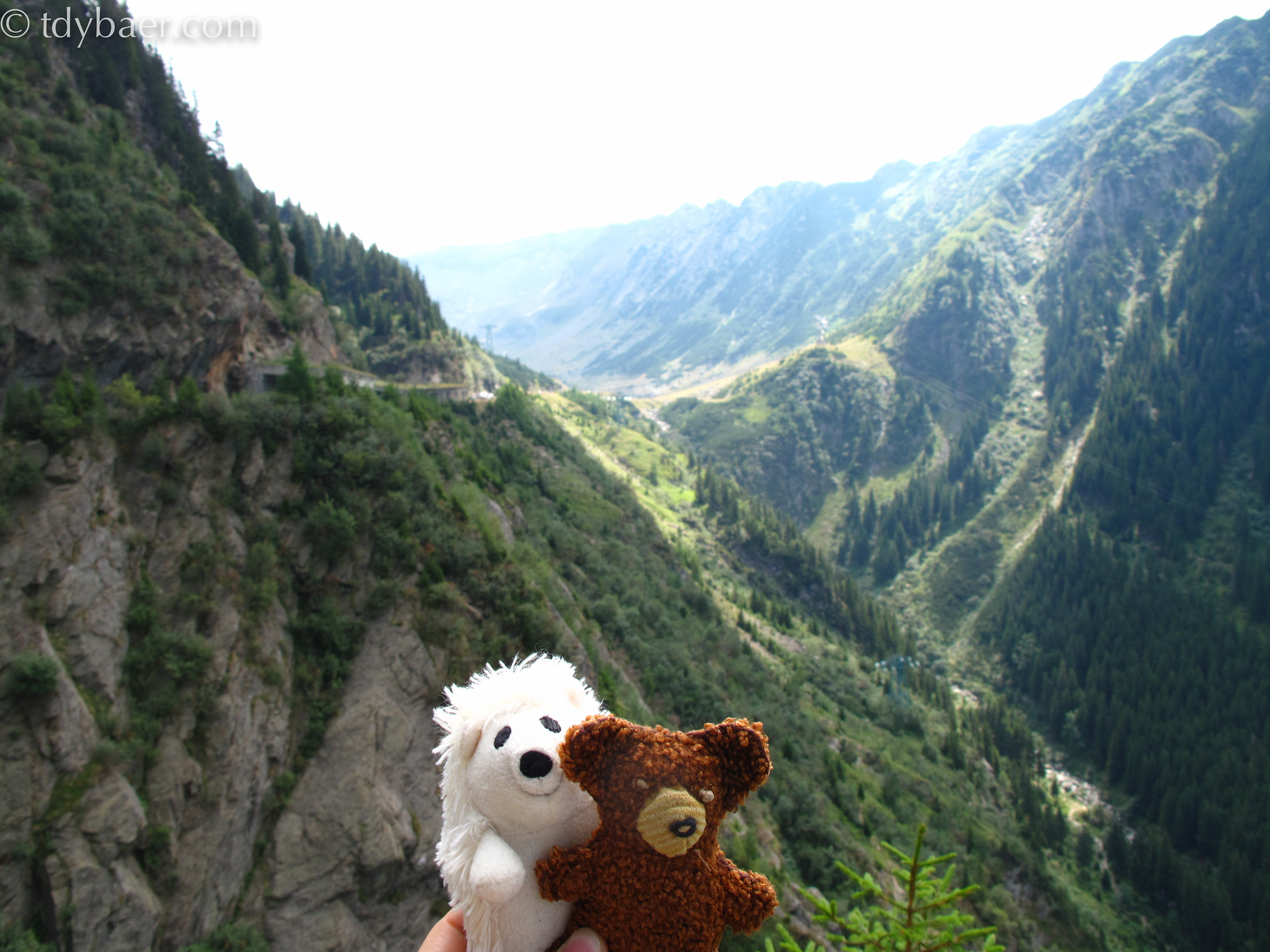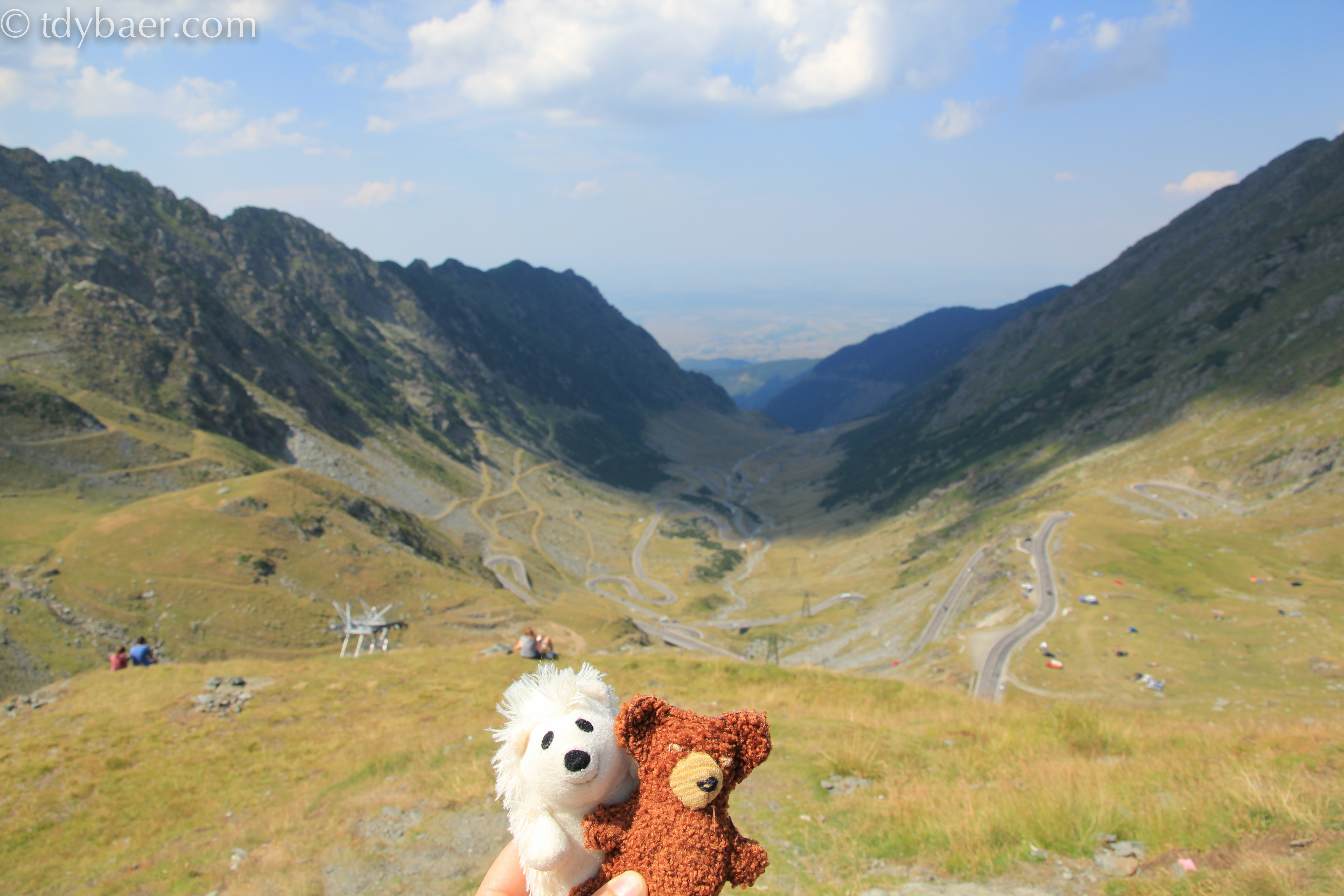 Von da ganz ganz unten sind wir losgefahren. Hier noch mal ein besserer Blick auf die kurvige Straße die sich zwischen den beiden höchsten Bergen Rumäniens, dem Moldoveanu (2544m) und dem Negoiu (2535m), hoch schlängelt.