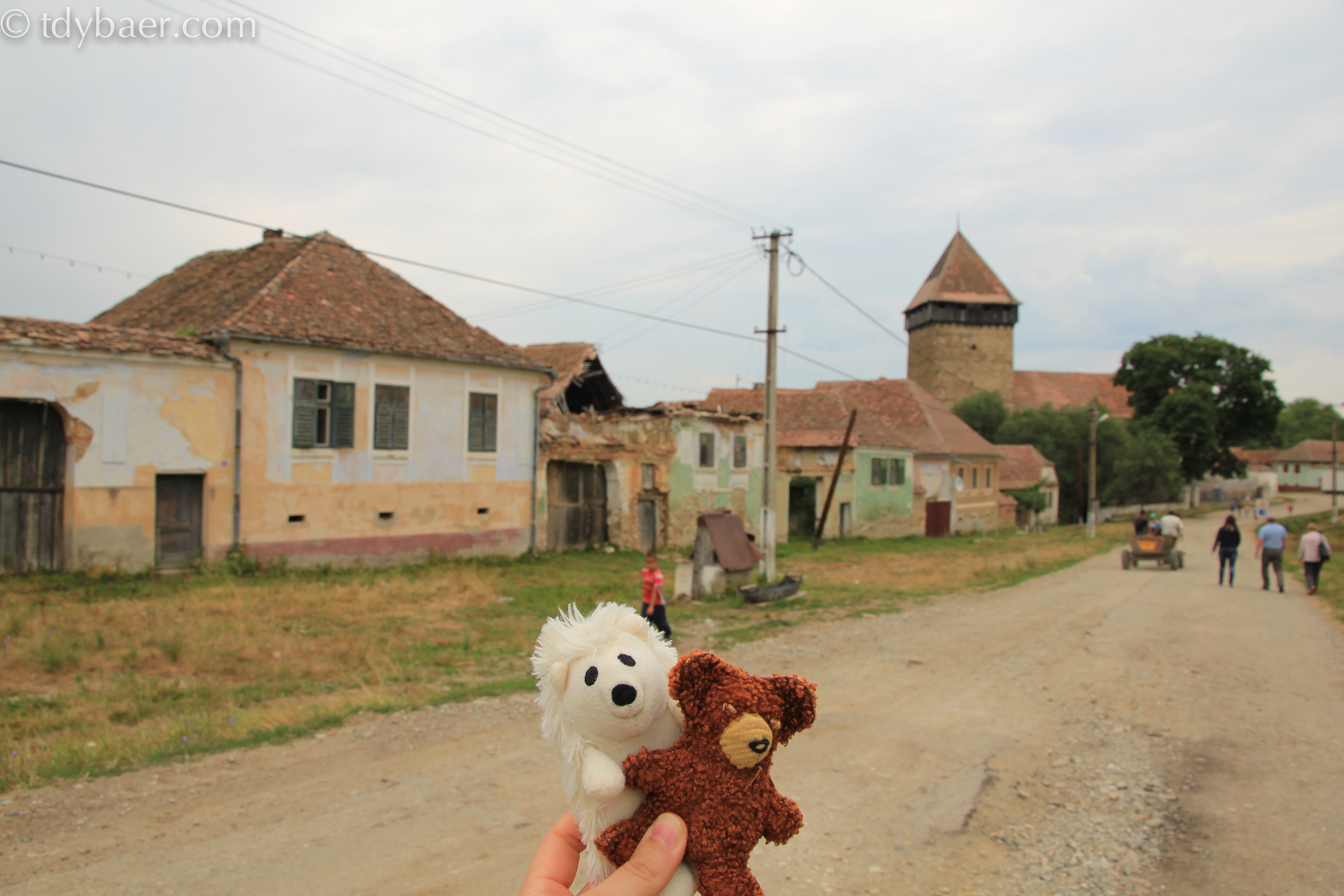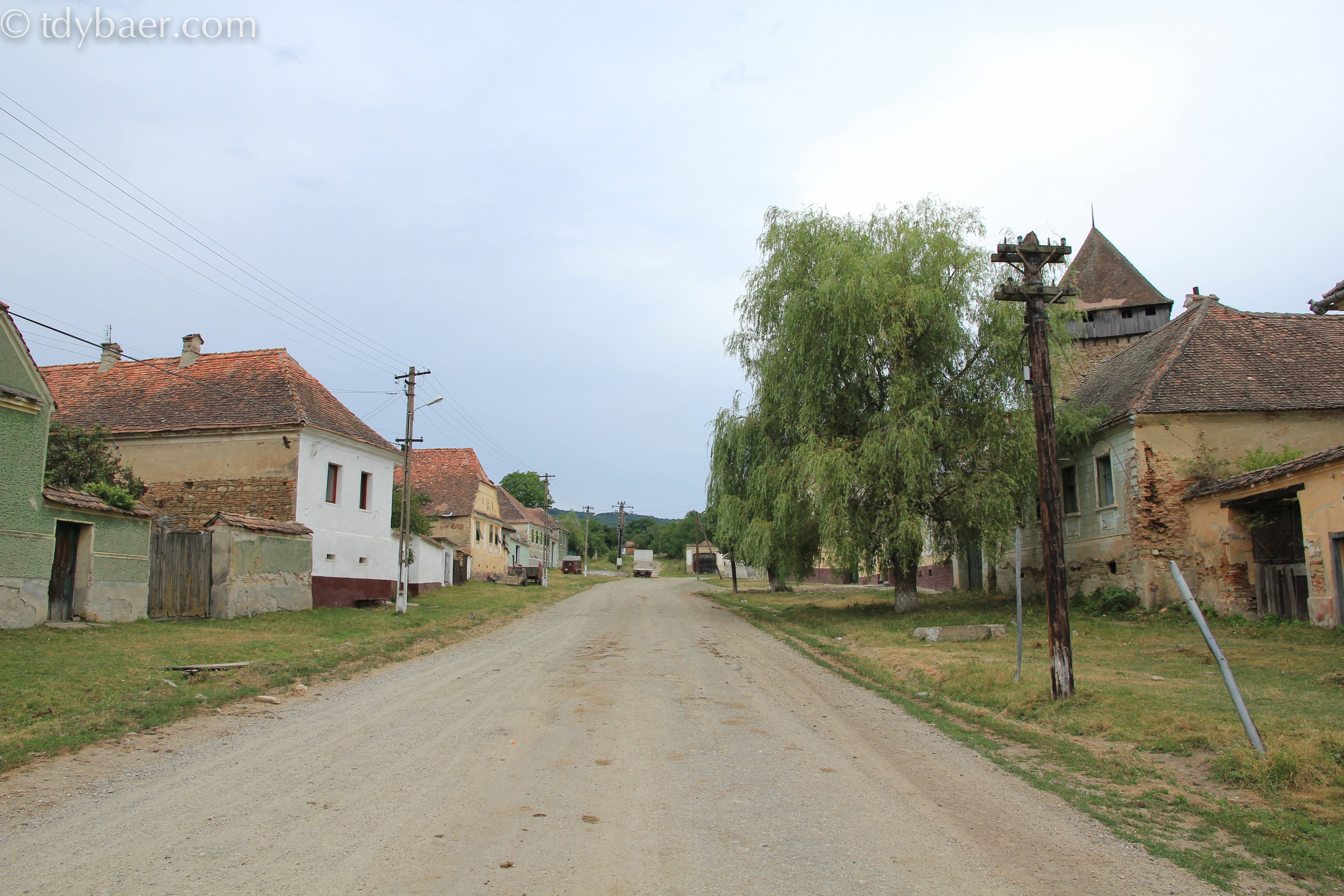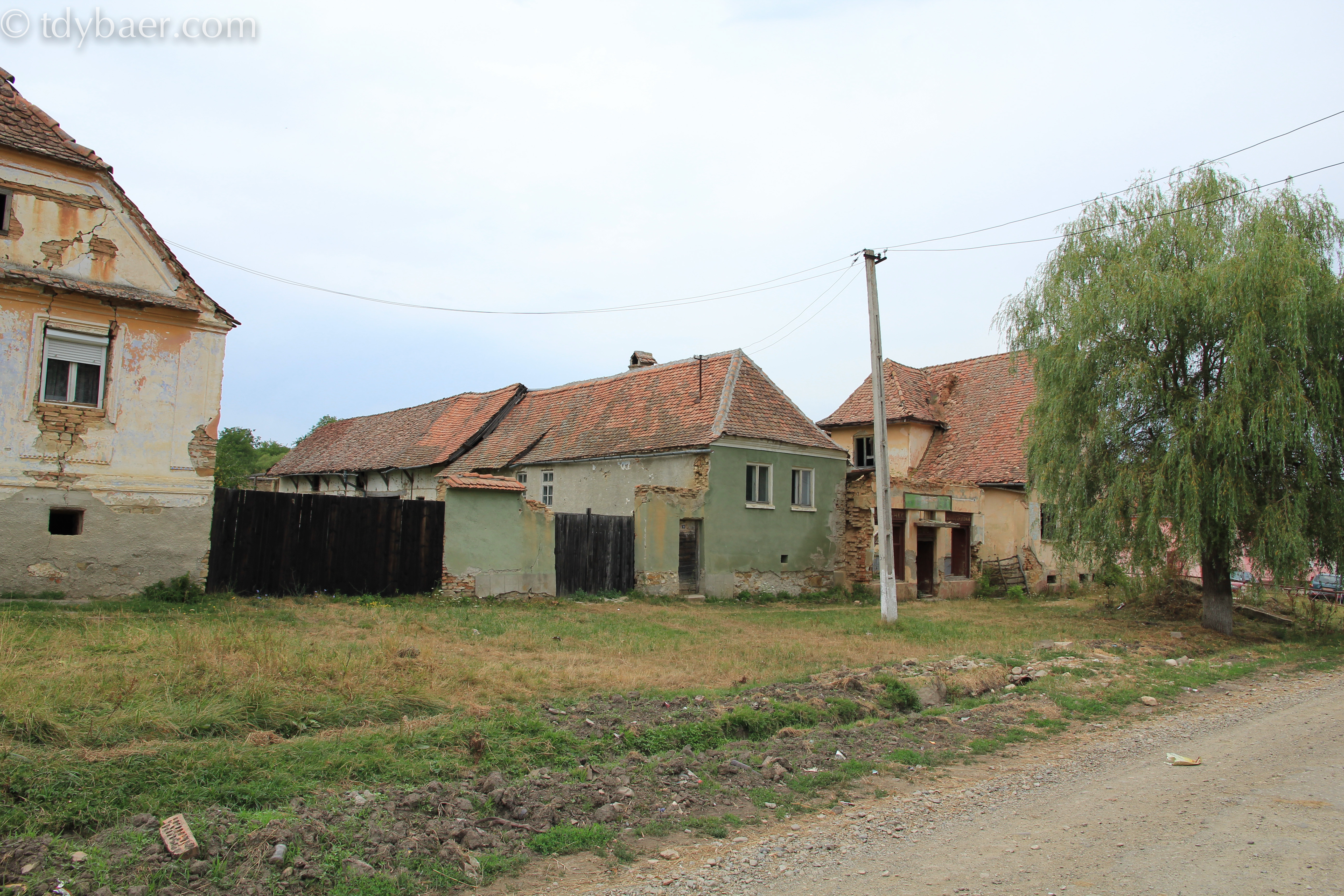 Weiter gings zur deutschsprachigen Schule die momentan saniert wird. Von außen sieht das schon sehr gelungen aus. Da wir uns natürlich auch die Kirchenburg von innen ansehen wollten, mussten wir erstmal den Schlüssel besorgen. Also ab durch das Dorf zum Schlüsselwächter ;-). Auf dem Weg dahin schauten wir uns die alten und oftmals verlassenen Höfe an. Erstaunlich ist, dass ab und zu dazwischen ein komplett neu gebautes Haus steht.