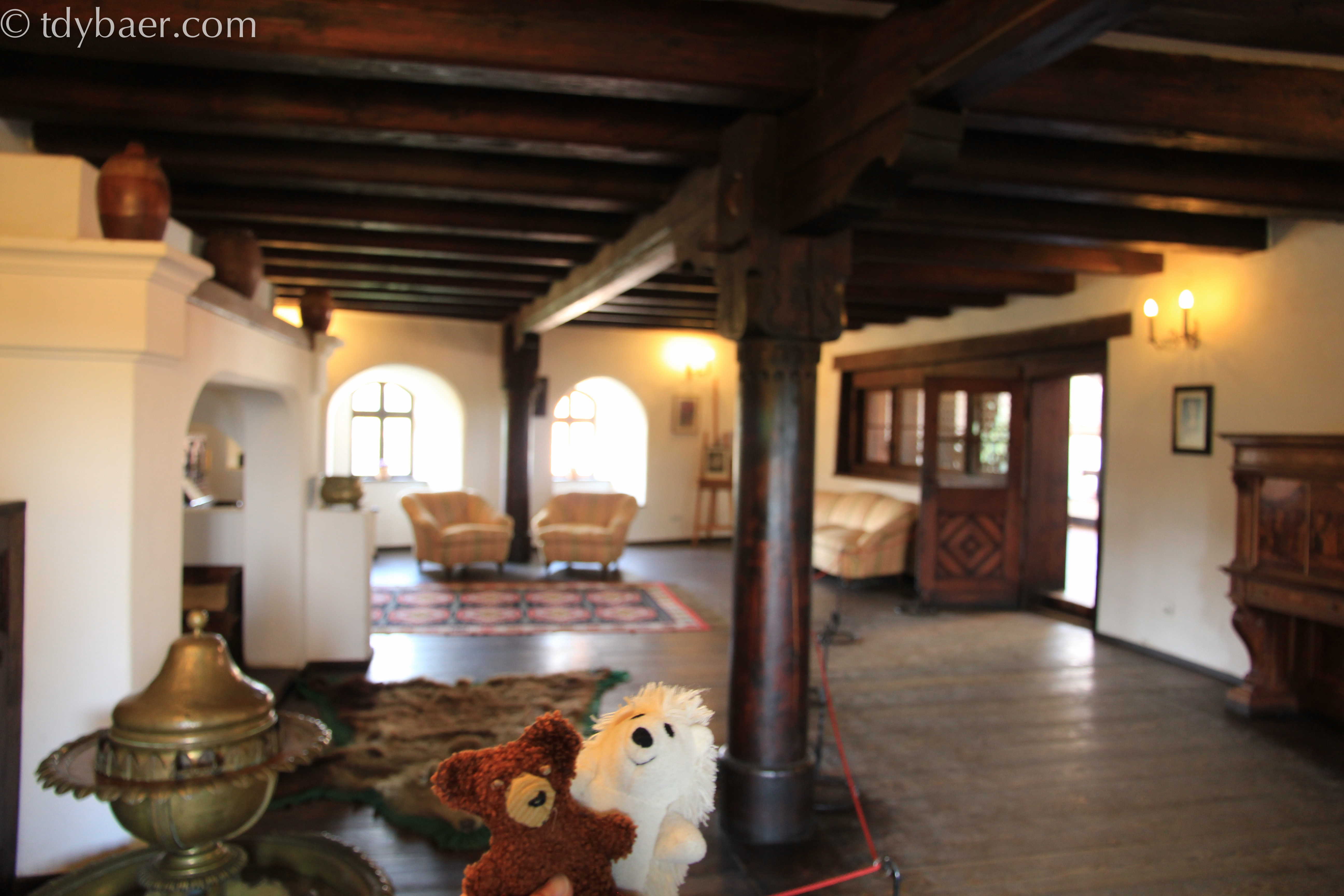 Vorbei an den vielen Souvenierständen bahnten wir uns den Weg zum Eingang. Hier gab es jede Menge Touristen. Die Burg ist wirklich sehr schön und man erfährt einiges über die Legende und den Romanschreiber. Mit dem Bau der Burg durch die Kronstädter Bürger wurde 1377 im ungarischem Auftrag begonnen. Die Burg wurde auf Grund strategischer und ökonomischer Gründe errichtet. Die ausgestellten Informationen sind im Gegensatz zu Aushängen in anderen Museen auf unserer Reise sehr schön aufbereitet und auch in Englisch. Die Burg kann über einen genau festgelegten Weg durch ausgewählte Zimmer besichtigt werden. Wer hofft hier Folterkammern und sonstige gruselige Sachen zu sehen wird enttäuscht und sollte lieber auf dem eigenen Dachboden nachschauen ;-). Der geführte Rundgang führt hauptsächlich durch die Wohnwelt der rumänischen Königin Maria. Hier befinden wir uns im Salon der Musik.