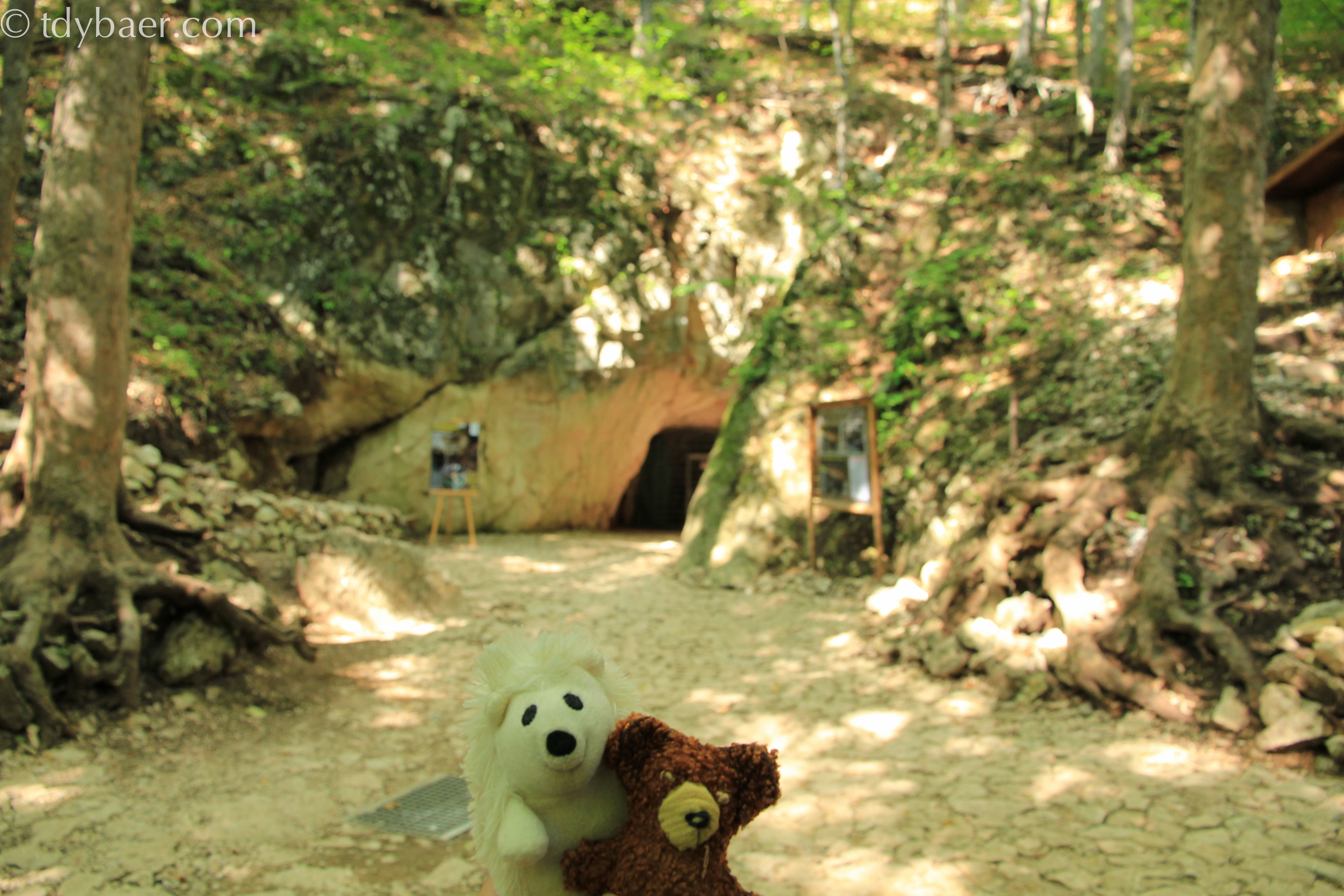 Über Stock und viel Stein und rauf und runter fuhren wir vorbei an Schafwiesen, vielen leerstehenden Bauruinen und das alles mit Super-Aussicht. Irgendwann erreichten wir kurz vor Bran wieder die normale Straße *puh*. Auf dem Rückweg in die Poiana Brasov besuchten wir noch die kleine Tropfsteinhöhle „Peştera Valea Cetatii„. Ein steiler Weg führt mitten durch den Wald zum Eingang.