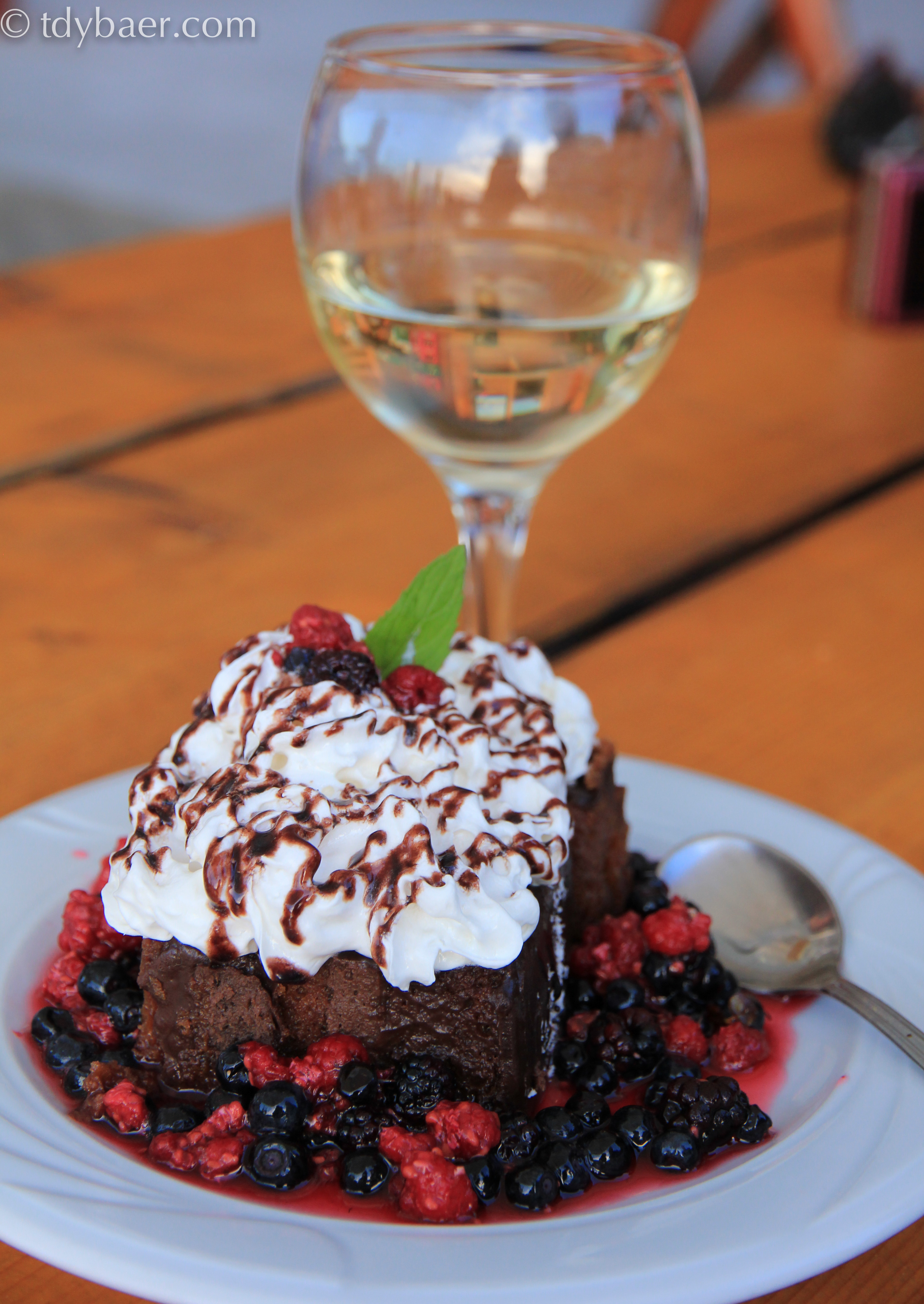 Obwohl wir alle schon kugelrund am Tisch saßen, konnten wir der Empfehlung des Hauses nicht widerstehen und bestellten dem Geburtstagskind einen großen Nachtisch.