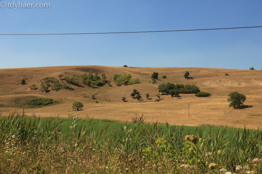 Alle guten Dinge sind Drei, deshalb machten wir uns auf den Weg nach Viscri (dt. Deutsch-Weißkirch). Da der Ort etwas abgelegen liegt, durften wir die letzten Kilometer mal wieder auf unseren geliebten Schotterpisten fahren. Unterwegs bot sich uns ein recht krasses Kontrastprogramm. Einerseits verdorrte Wiesen und andererseits grüne bewässerte Felder.