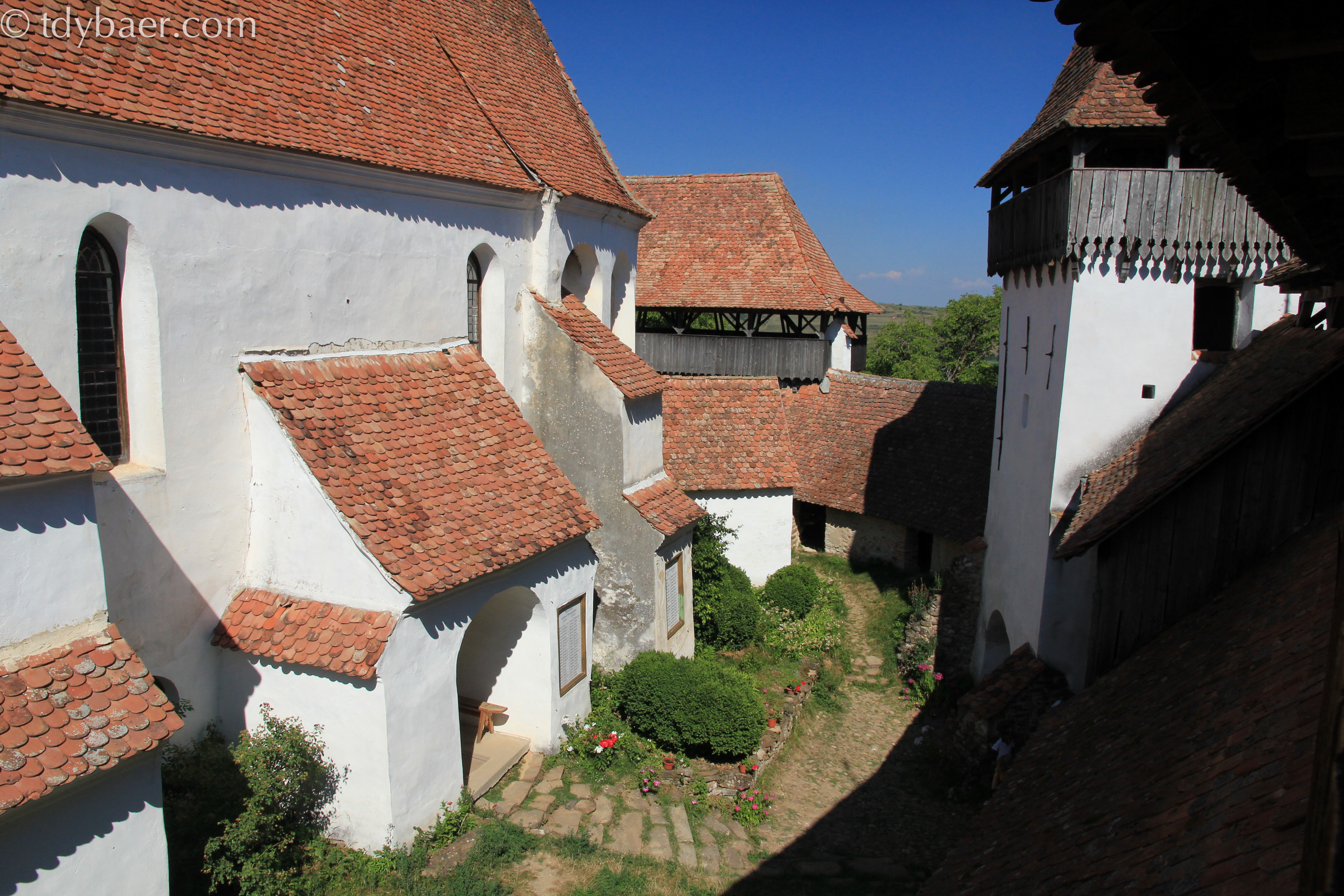 Die Straße hoch zur Kirchenburg wurde sehr schön gepflastert und die Häuser sind sehr schön restauriert. Der Rest des Dorfes kommt wohl in den nächsten Jahren dran. Aber nun zur Kirche. Sie wurde gegen 1500 zu einer Wehrkirche umgebaut und ist ein eindrucksvolles Beispiel der siebenbürgischen Wehrarchitektur.