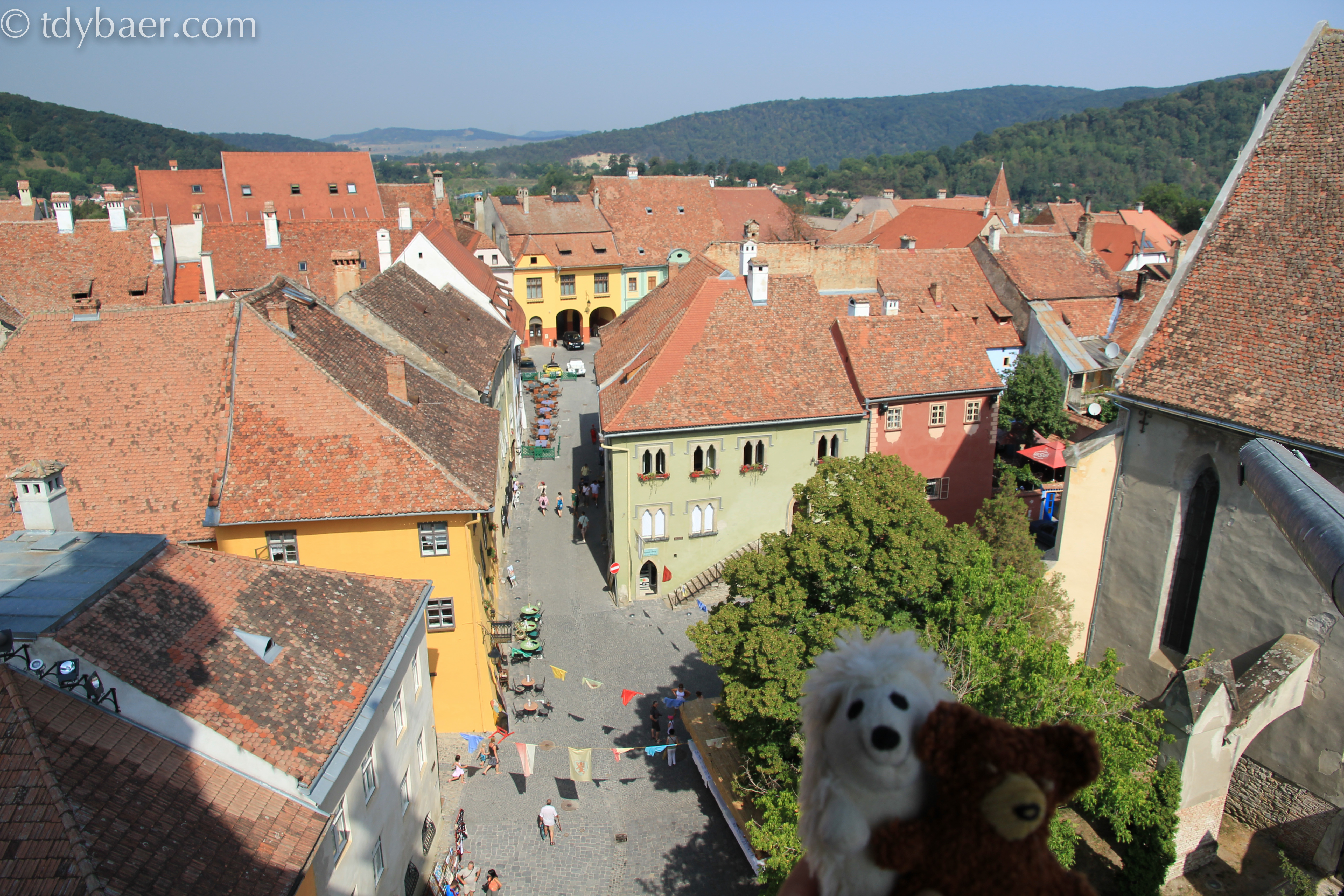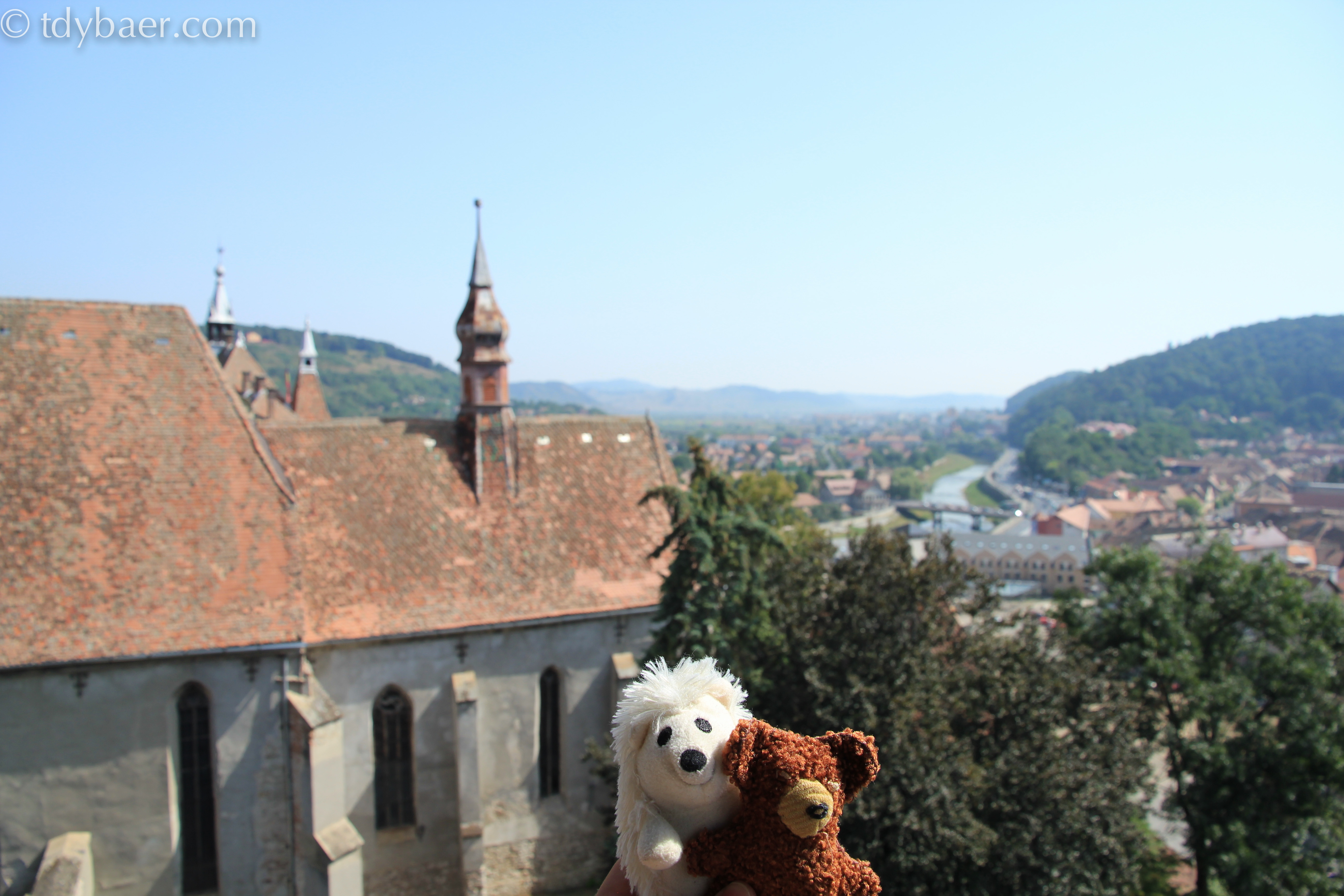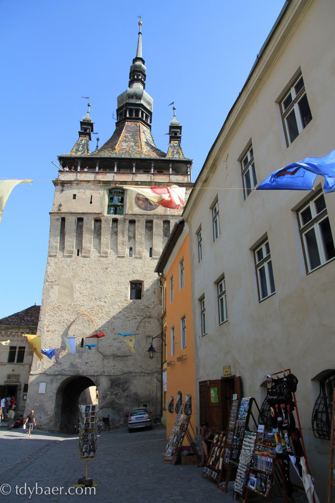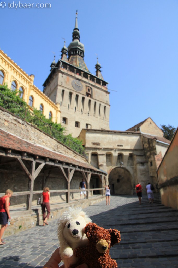 Heute hatte sich unser Auto mal eine Pause verdient. Nach dem Frühstück im Hotel machten wir uns zu Fuß auf den Weg in das historische Zentrum von Schäßburg, dass sich auf dem steilen Burgberg befindet. Das historische Zentrum befindet sich in der Oberstadt und verteilt sich auf dem unteren Burgberg und dem oberen Schulberg. Die noch vollständig bewohnte Burgstadt ist einmalig in Europa und wurde 1999 zum Unesco Weltkulturerbe ernannt. Die Festung der Burgstadt besitzt 8m hohe Burgmauern und noch neun erhaltene Wehrtürme, die den Namen der Zünfte tragen, von denen sie einst erbaut wurden. Der schönste Weg in die Burgstadt führt über die Turmstraße hinauf zum Stundturm, dem Wahrzeichen von Schäßburg.