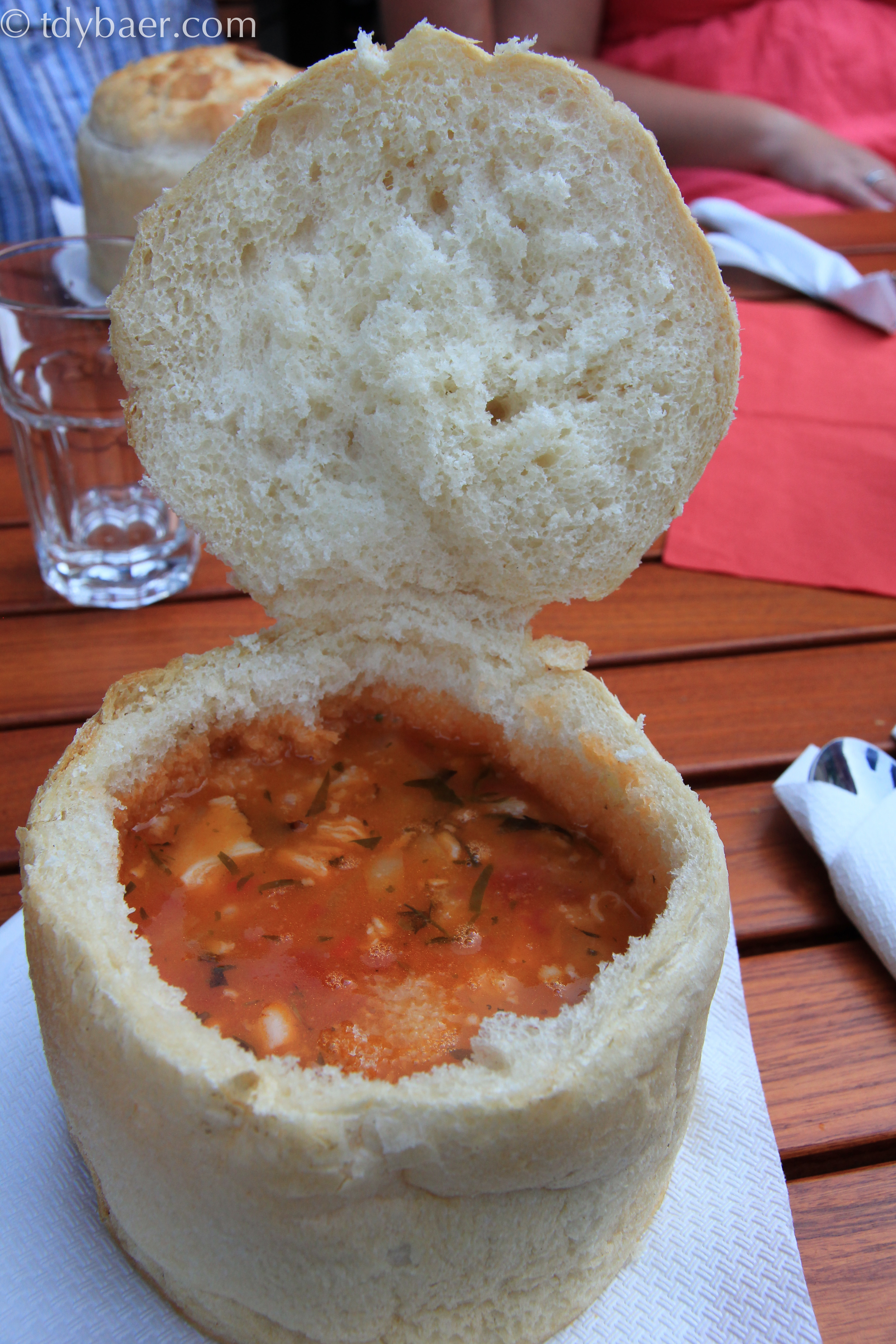Nach einer kurzen Abkühlung im Hotel suchten wir uns noch ein nettes Restaurant für ein leckeres Abendessen. Wir fanden das etwas versteckt liegende Restaurant Casa Ferdinand an einem Aufgang in der Nähe des Piata Octavian Goga. Hier konnte ich die in dieser Region typische Suppe im Brotteig kosten und genießen :-).