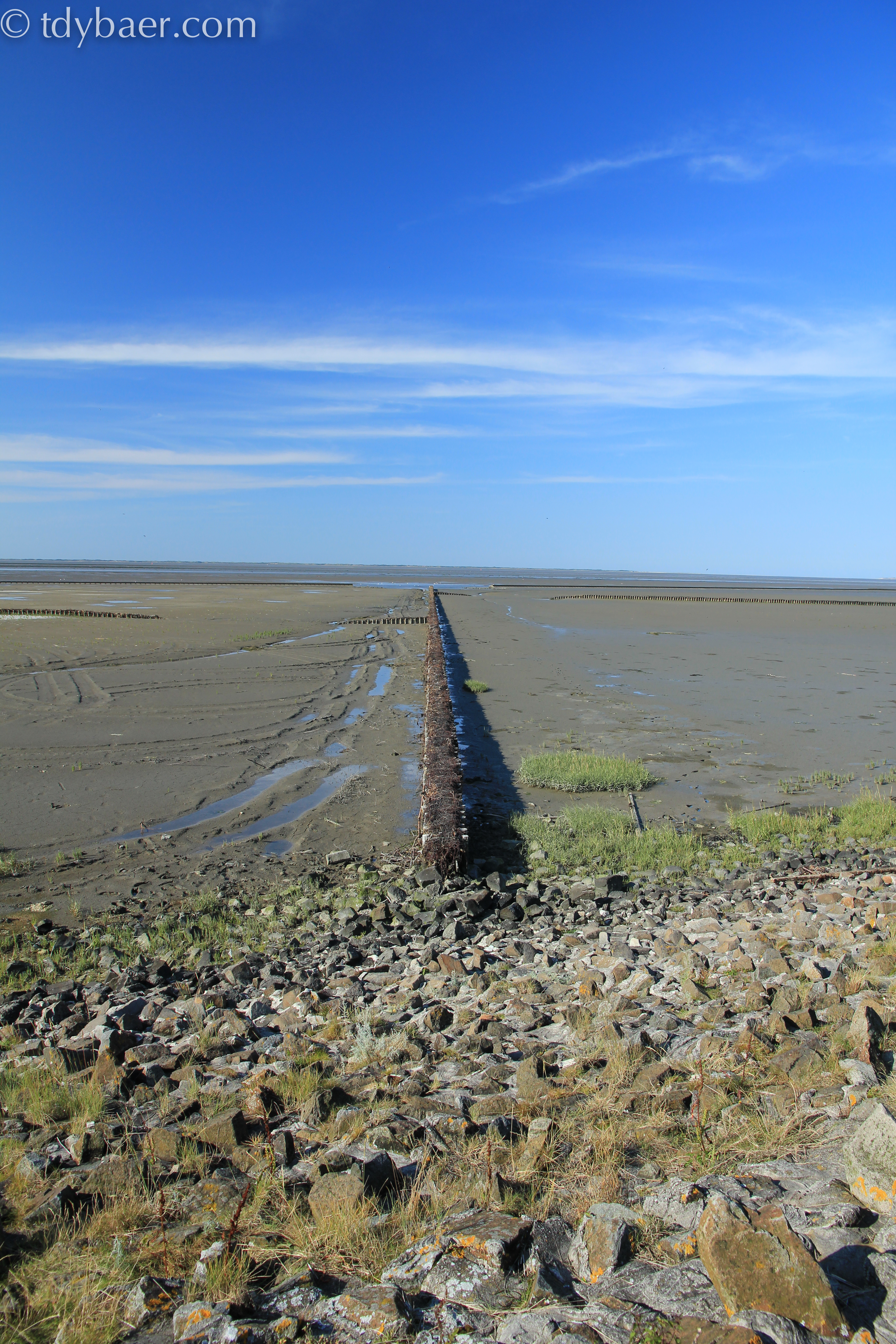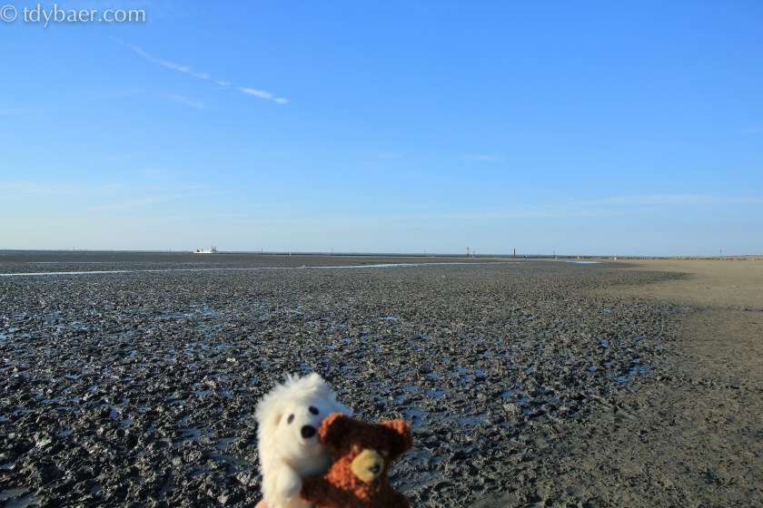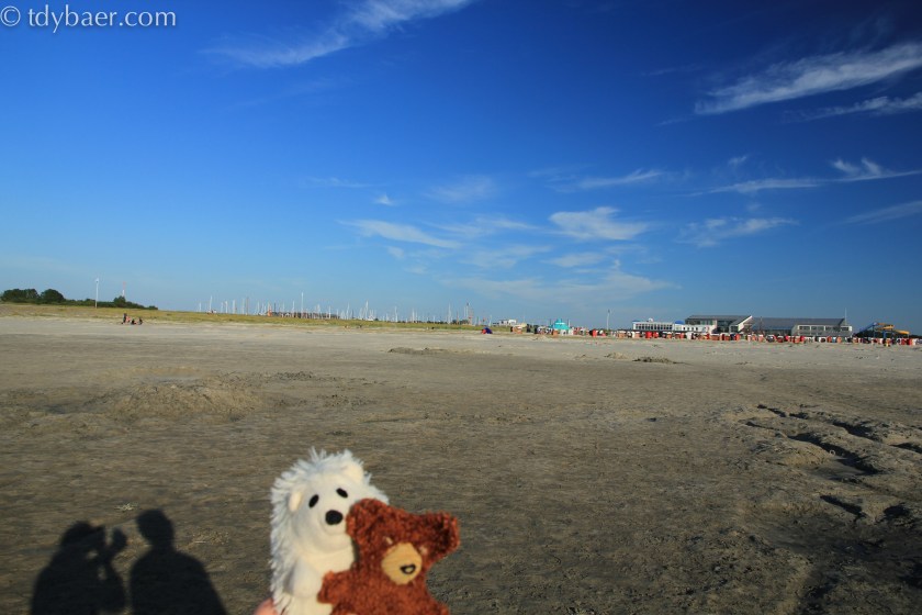Hinter uns befindet sich der Nationalpark „Niedersächsisches Wattenmeer“. Leider war grad Ebbe, so dass wir nicht im Wasser plantschen konnten.