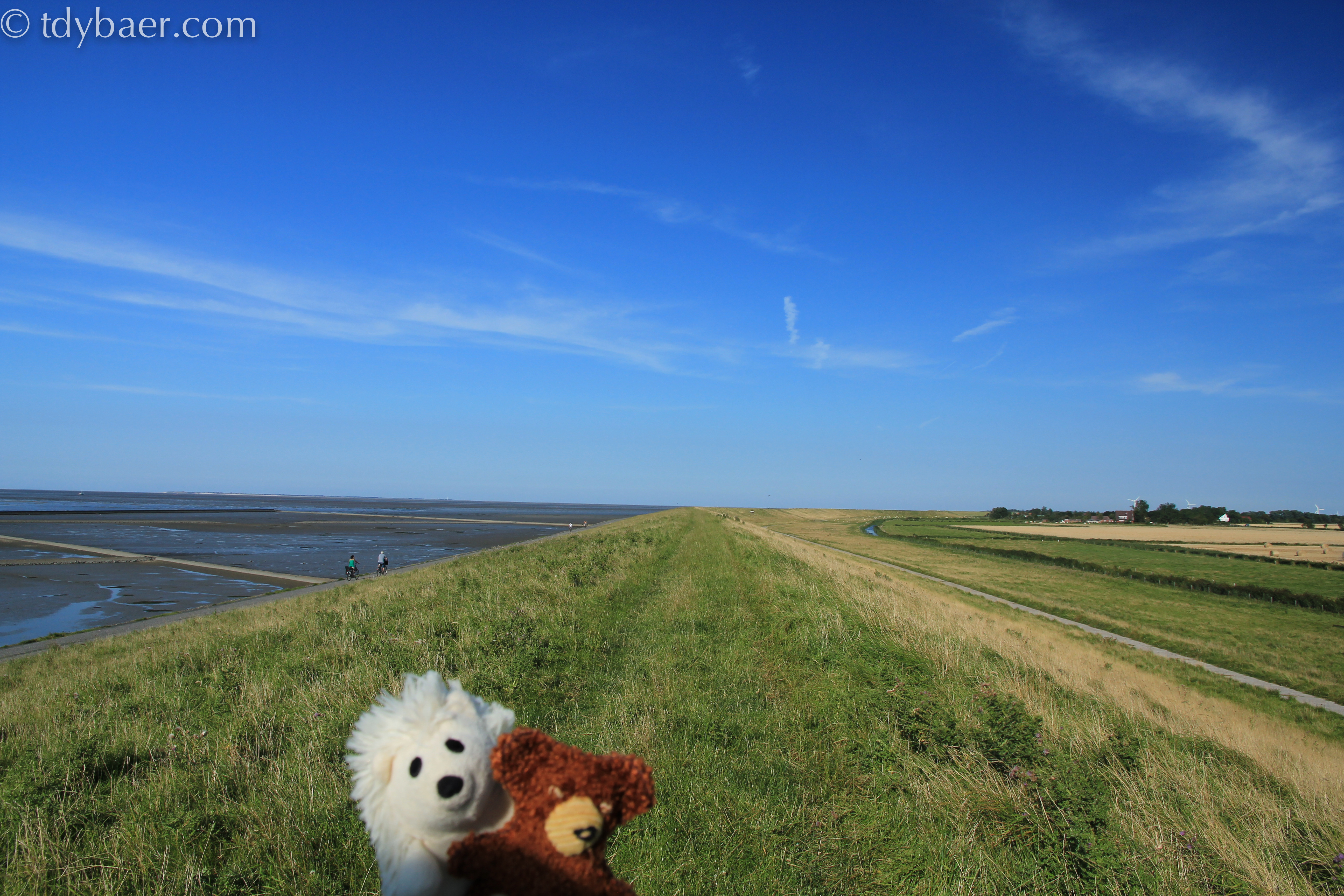 Da wir ja den halben Tag im Auto saßen, hieß es nun Tatzen und Pfoten vertreten. Also ab ans Meer für einen Spaziergang entlang des Deiches.