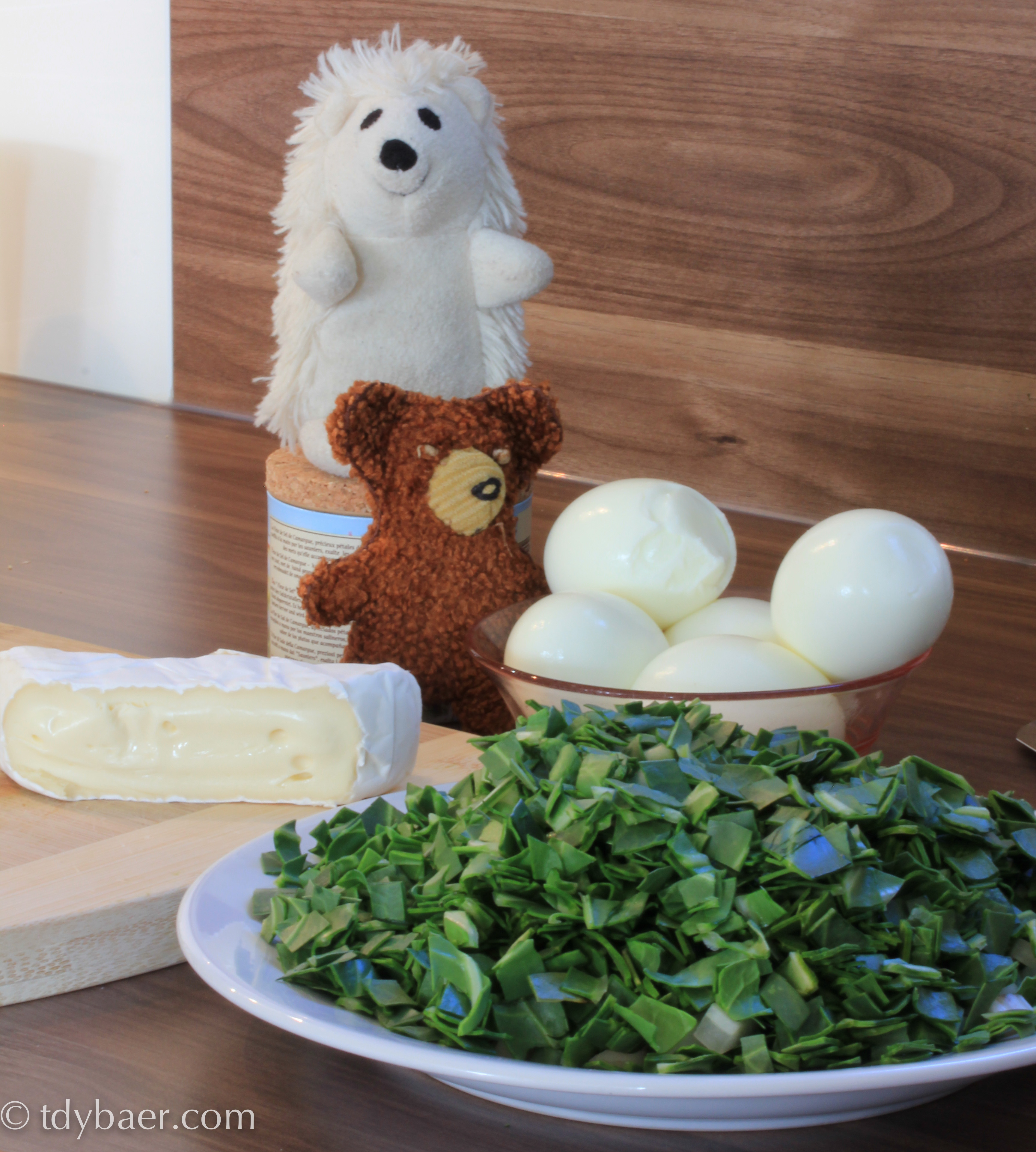 Vorab der Hinweis: Die Mangold-Ei-Mischung muss 8 Stunden ziehen, bevor sie in den Teig darf.