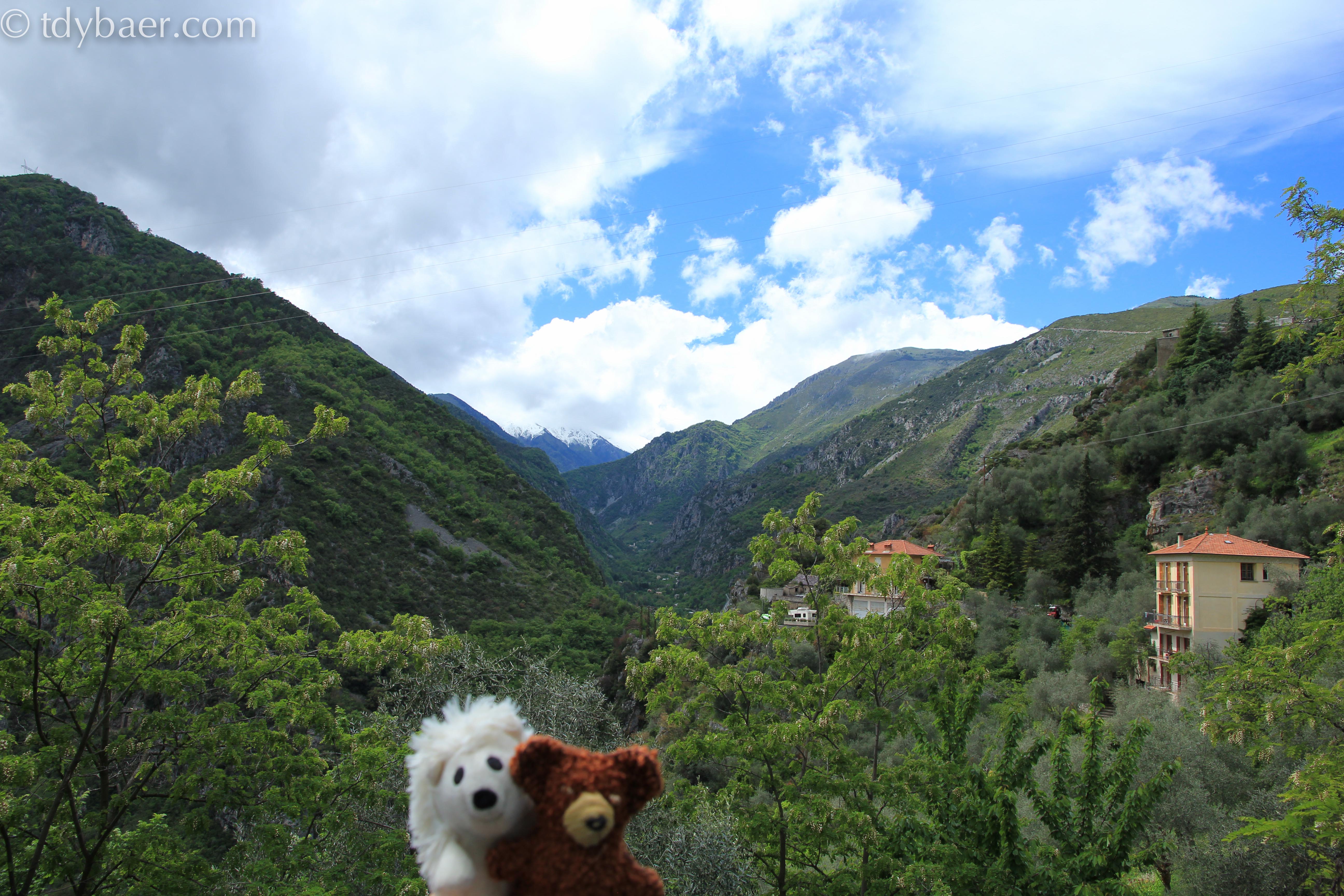 Auf dem Weg in Richtung Sospel hielten wir im sehr schönen Bergdorf Saorge und schauten uns etwas um. Das komplette Dorf steht unter Denkmalschutz und ist mit seinen im Halbkreis aufstrebenden Wohnhäusern sehr beeindruckend. Vor allem weil man von hier oben eine super Aussicht auf die Berge und die im Tal vorbei rauschende Roya hat.