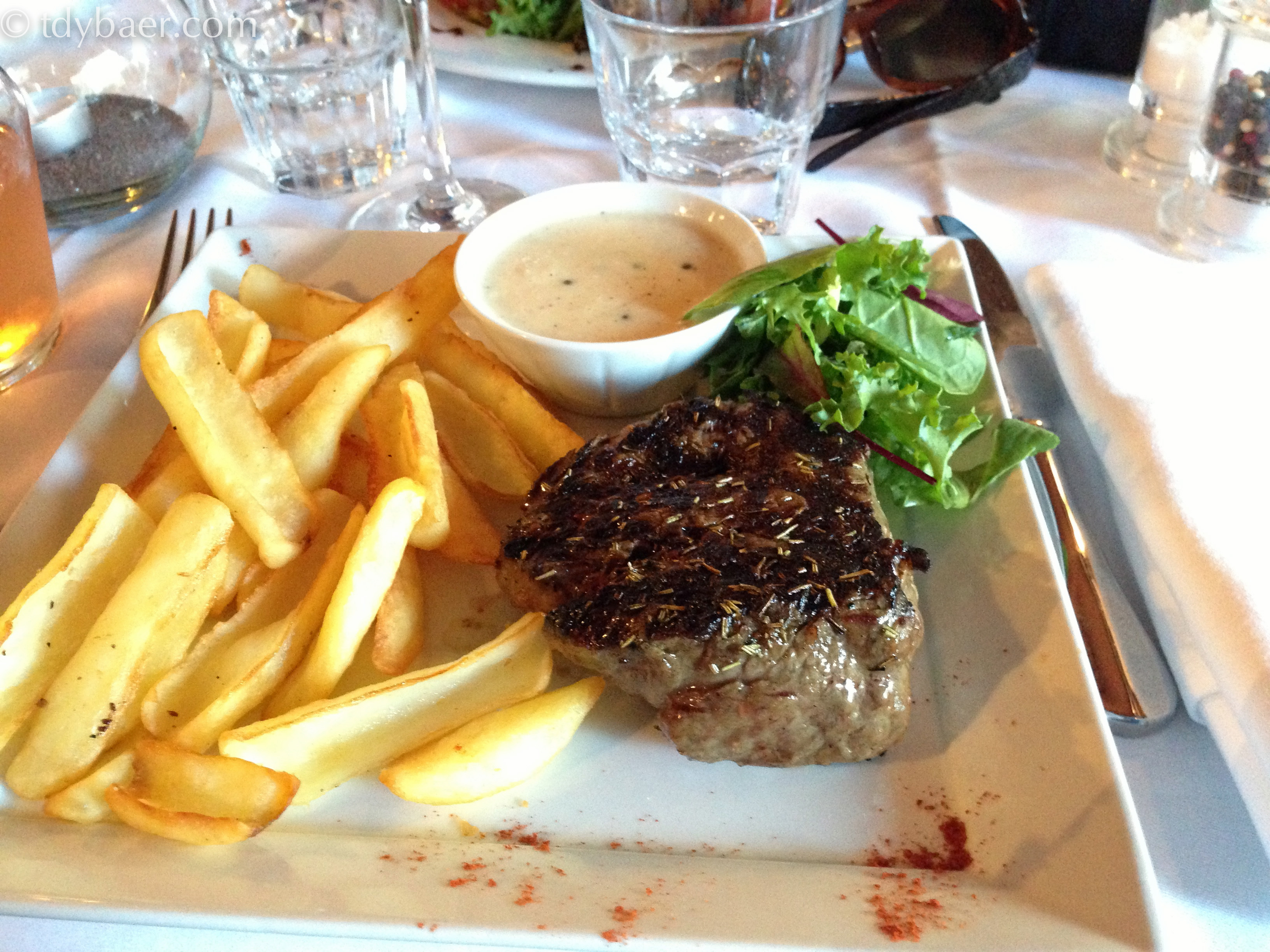 Nun aber wieder zurück ans Meer und gleich mal den vollen Berufsverkehr von Nizza mitnehmen. Zum Glück kamen wir noch rechtzeitig in Villefranche-sur-Mer an, denn wir hatten uns mit Freunden, die auch in Eze zu Besuch waren, zum Abendessen verabredet. Für uns gab es leckere Pommes mit Steak und
