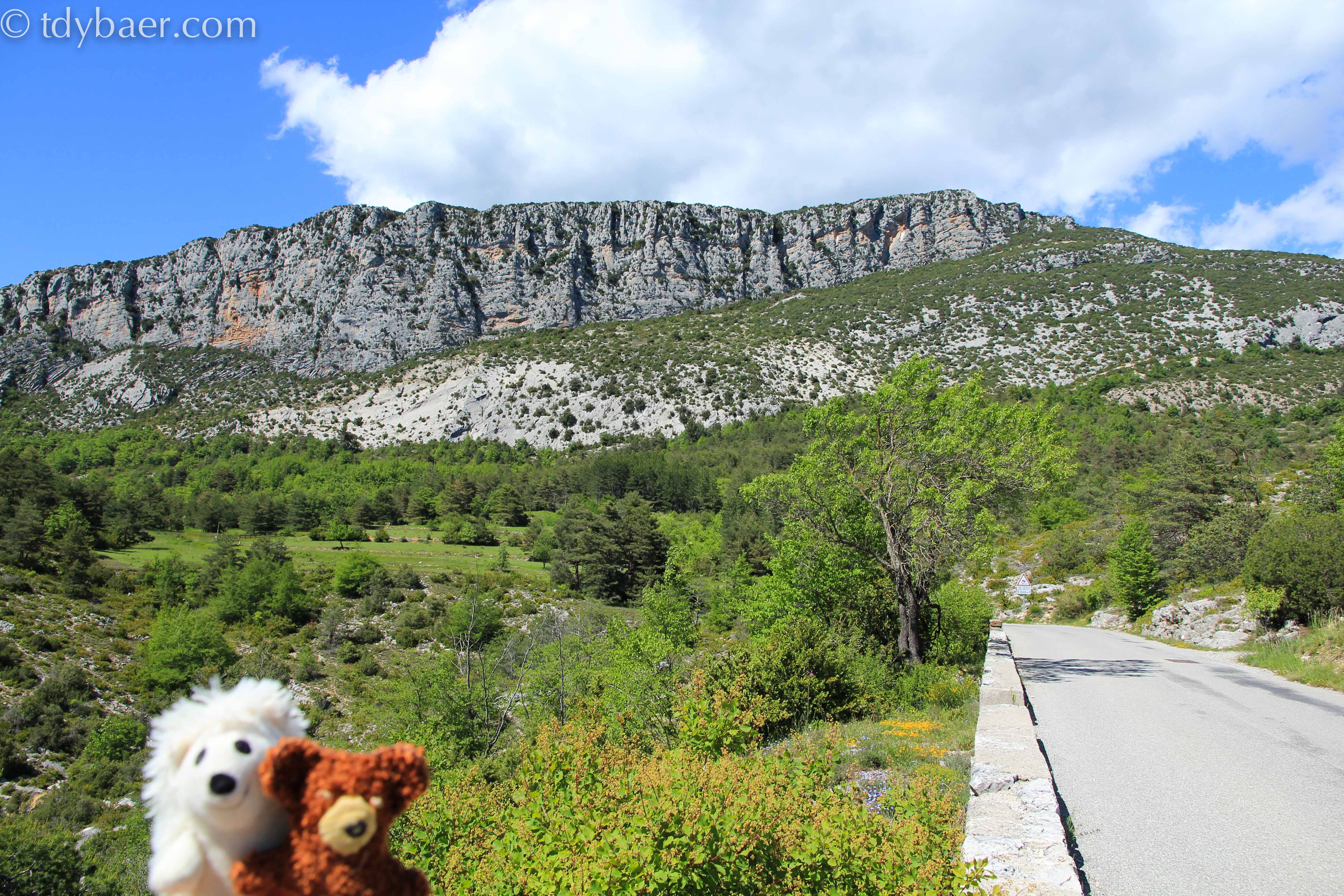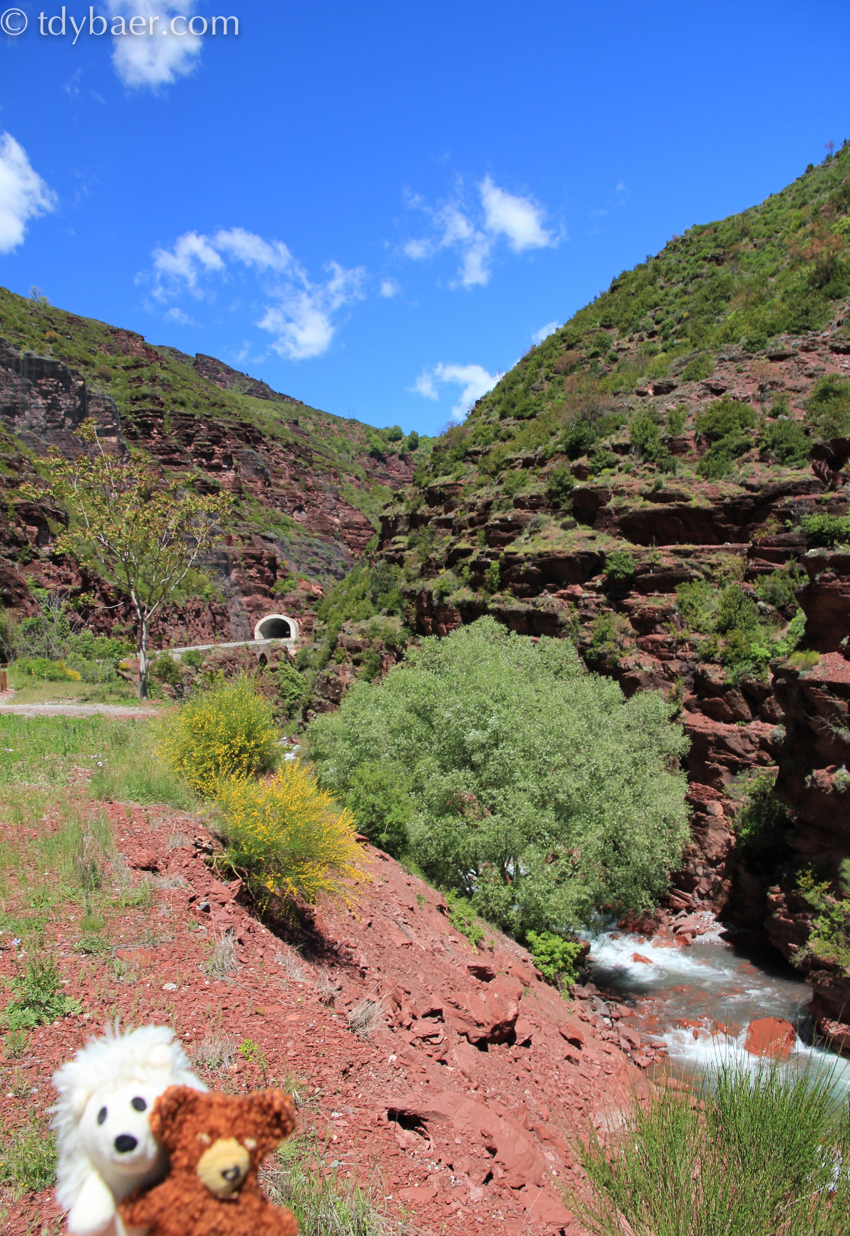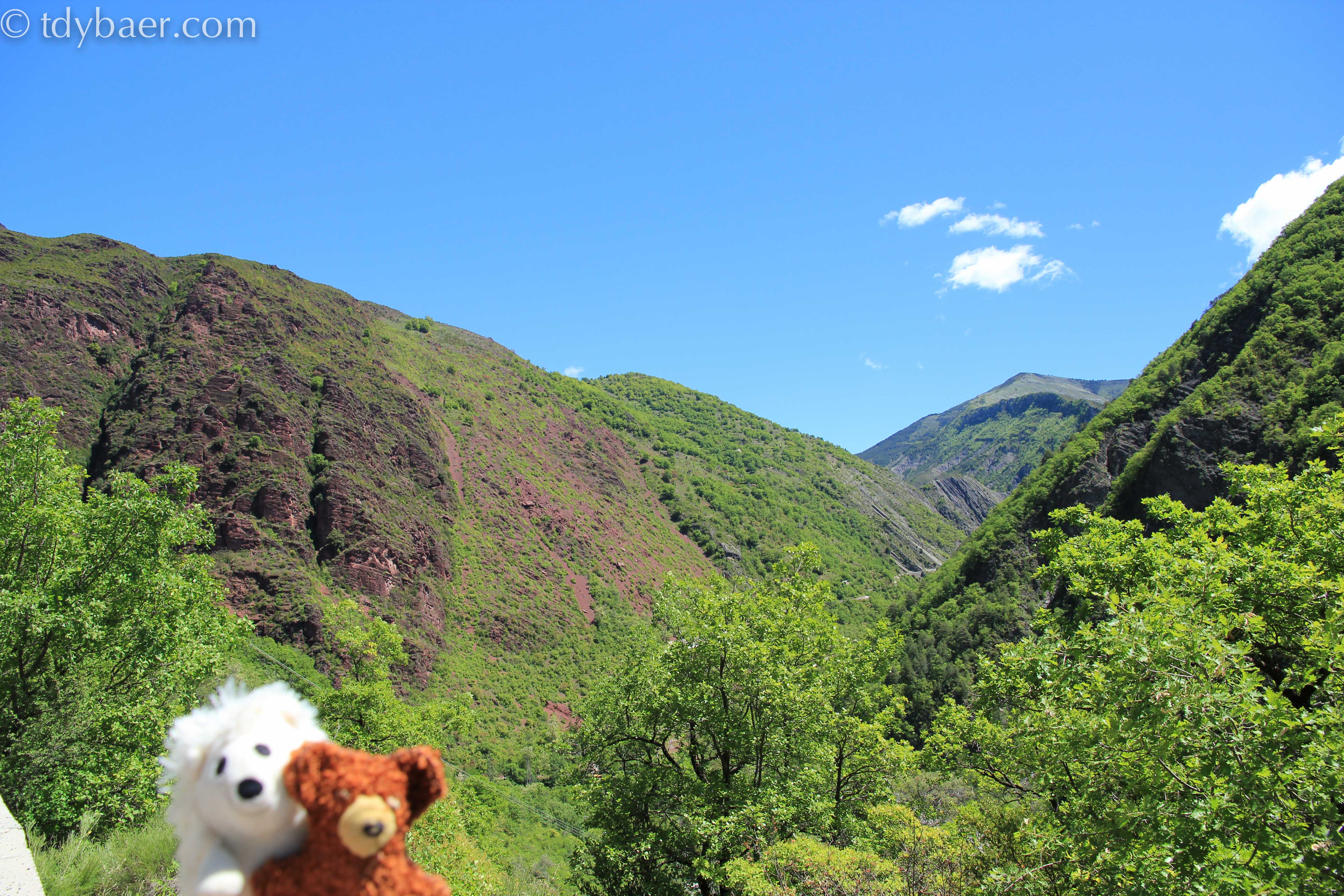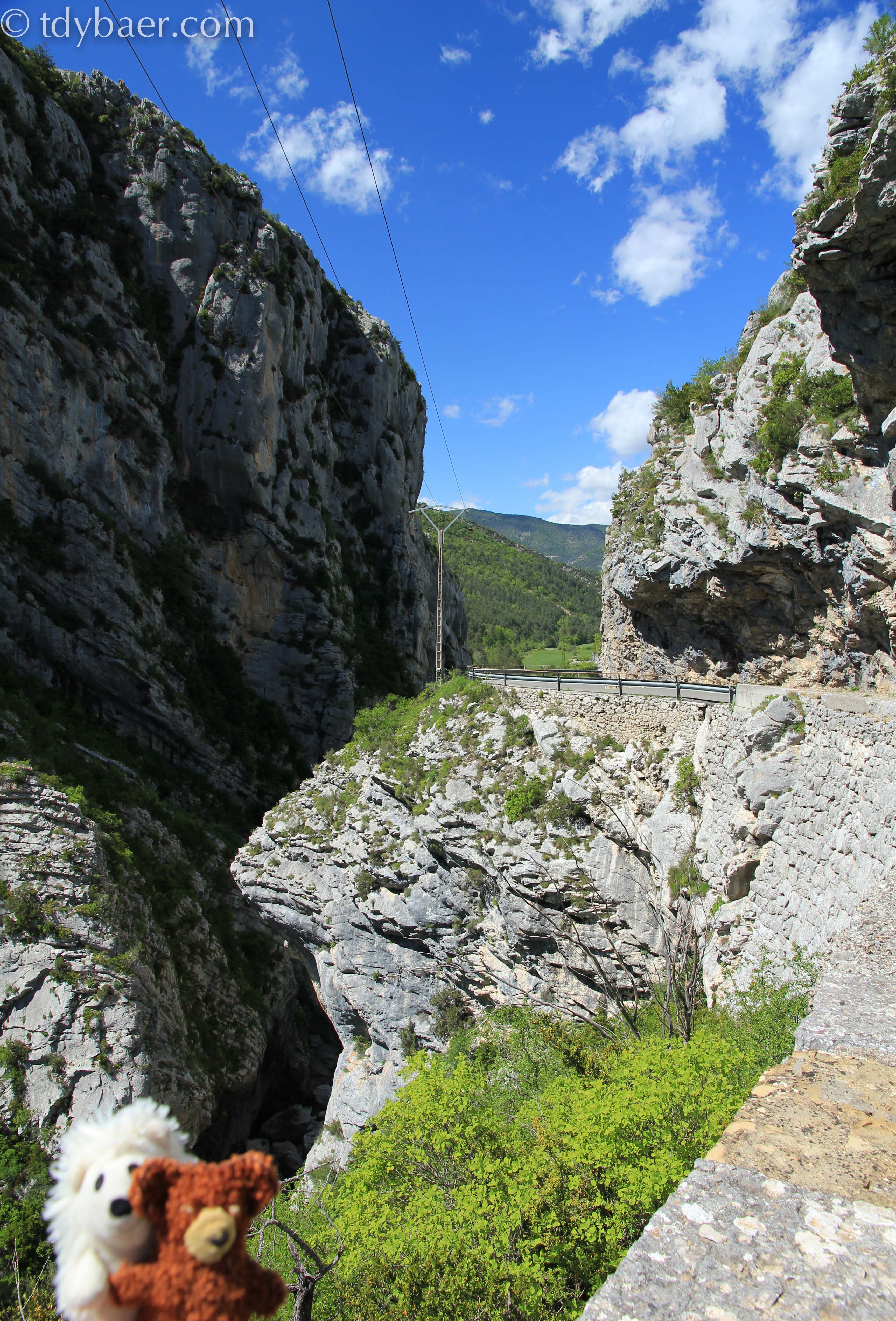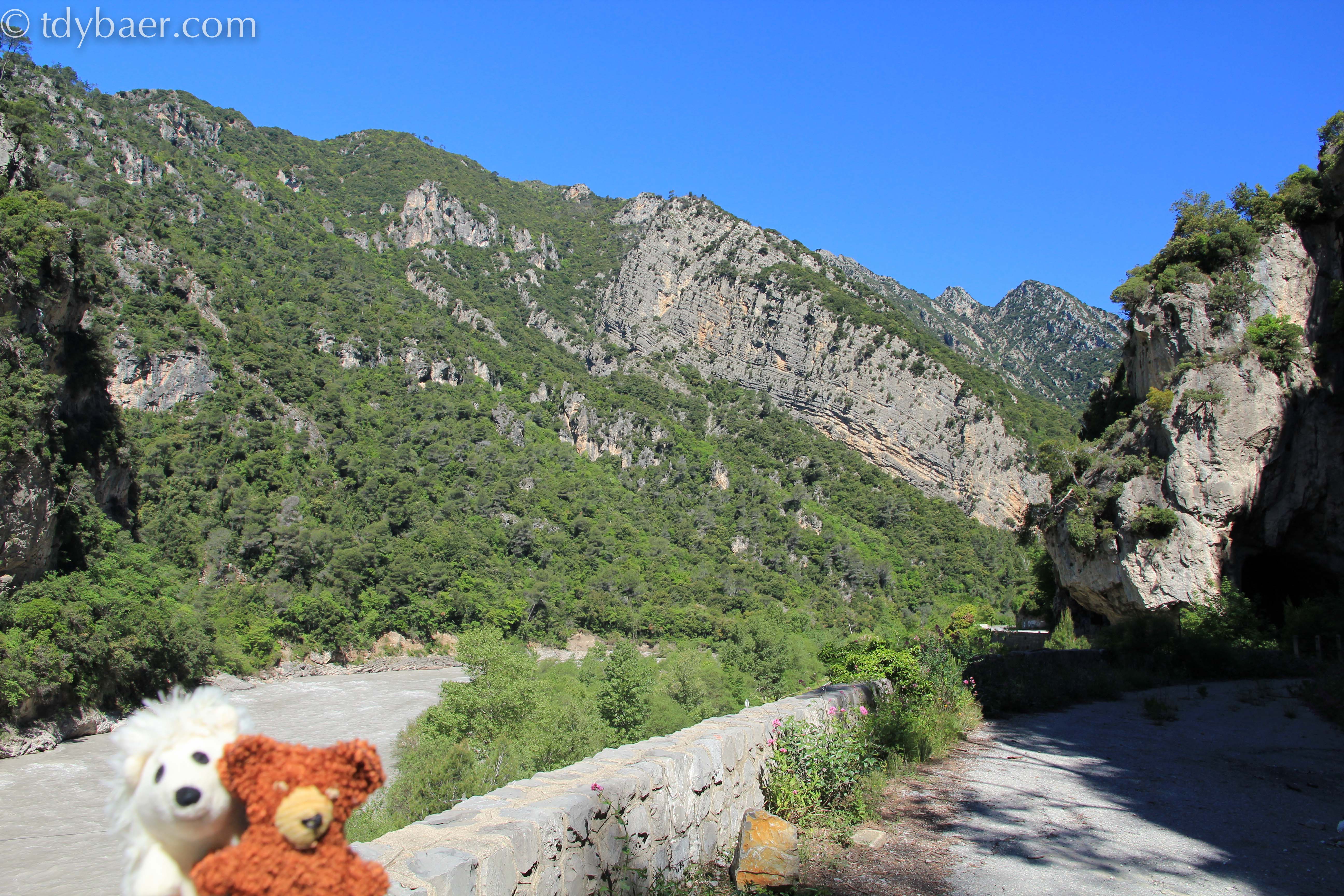 Nach einer Weile auf der D6202 zweigt man schließlich auf die D28 Richtung Beuil ab. Im unteren Teil der Strecke kann man die Gorges inférieures du Cians bewundern. Zusammen mit unseren drei Stofftier-Reisebegleitern machten wir uns es für ein kurzes Päuschen am Abgrund gemütlich :-).