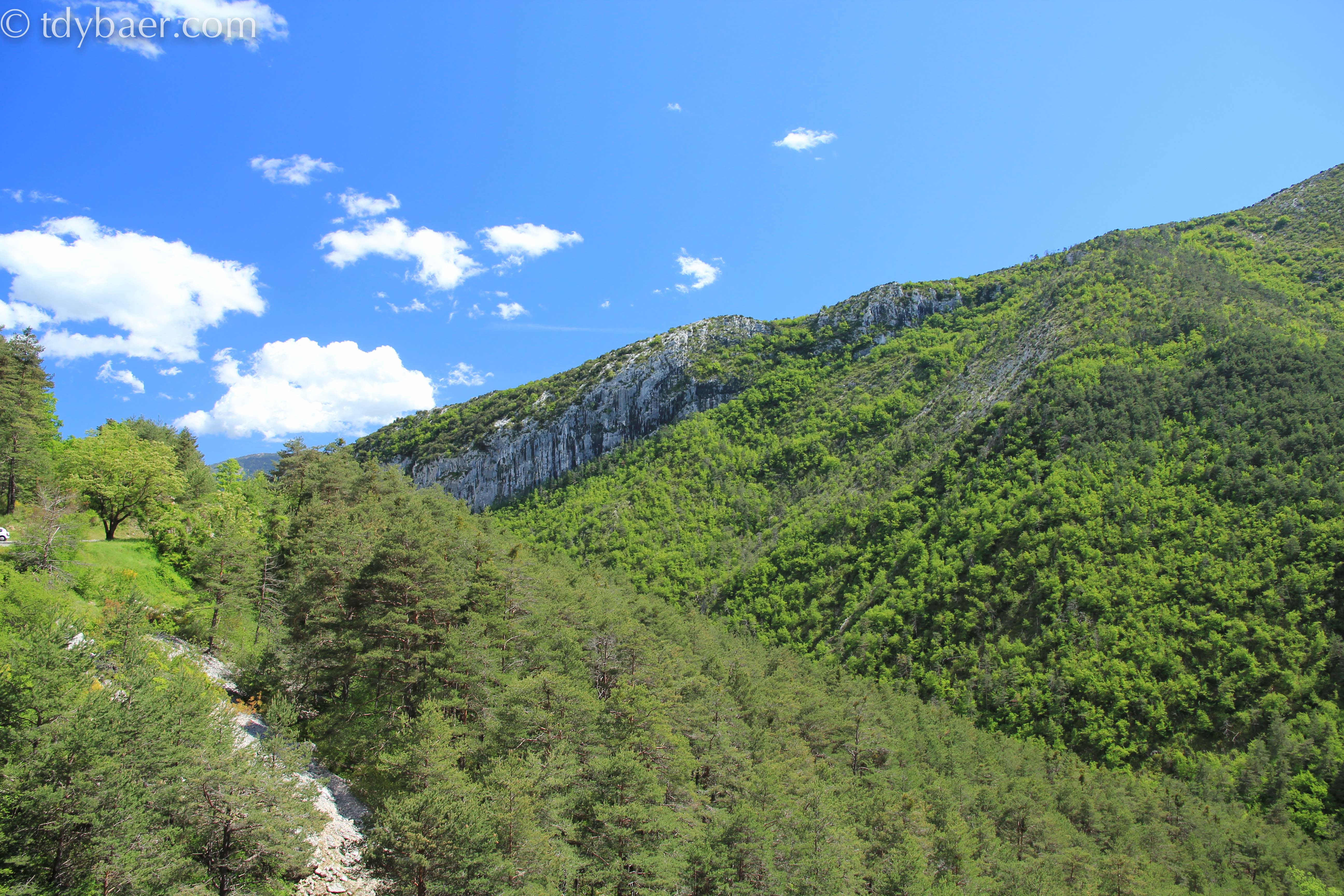 Auf der Höhe von Puget-Theniers bogen wir rechts auf die D2211A Richtung Sigale ab. Die Landschaft ist geprägt von vielen Schluchten und schönen bewaldeten Hügeln und Bergen.